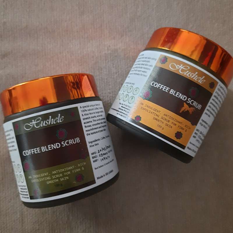 Introducing the Hushele 100% Natural Coffee Blend Aloe Scrub, a luxurious and effective skincare solution designed to rejuvenate and nourish your skin. This 100ml scrub combines the power of natural ingredients to deliver exceptional results. Ingredients: Coffee: Exfoliates and stimulates blood flow, helping to reduce the appearance of cellulite. Aloe Vera: Provides deep hydration and nourishment, promoting smoother and healthier skin. Benefits: - Targets cellulite, stretch marks, acne, and eczema. - Promotes firmer and smoother skin. - Boosts nourishment and improves skin texture. Size: 100ml Price: Rs. 1090/= Color: Natural brown How To Use: - Massage: Apply the scrub onto wet skin using your hands or a washcloth. - Exfoliate: Smooth away dead skin cells using gentle, circular motions. - Rinse: Rinse off with warm water. - Repeat: Use as necessary for best results. Features: - 100% Natural Ingredients: Free from harmful chemicals and synthetic additives. - Multi-Purpose: Effective for treating various skin issues like cellulite, stretch marks, acne, and eczema. - Easy to Use: Simple application process for a spa-like experience at home. Ideal For: - Daily Skincare Routine: Incorporate into your daily routine for continuous skin improvement. - Special Treatments: Use for targeted treatments on problem areas. - Gift: A thoughtful gift for skincare enthusiasts looking for natural solutions