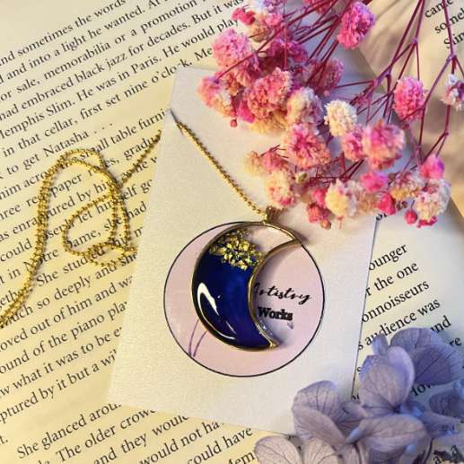 Item #006 Illuminate your style with a touch of celestial elegance with our Crescent Moon Charm Necklace, featuring a stunning ombre blue design with a gold finish. Handcrafted with meticulous care, this necklace showcases a beautifully designed crescent moon charm that captures the serene beauty of the night sky. The ombre blue gradient adds a dreamy, ethereal quality, while the gold-plated finish provides a sophisticated touch, making it a perfect accessory for adding a hint of celestial charm to any outfit. Key Features: Material: Durable metal with a gold-plated finish for a touch of luxury Design: Exquisitely crafted crescent moon charm with a striking ombre blue gradient and gold accents Chain: Adjustable, gold-plated chain for a comfortable and customizable fit Closure: Secure lobster clasp for ease of wear and reliability Ideal for both casual and formal occasions, this charm necklace adds a touch of celestial beauty and elegance to your ensemble. Wear it on its own for a refined statement or layer it with other pieces to create a look that reflects your love for the night sky and sophisticated style. Care Instructions: To maintain the beauty of your crescent moon charm necklace, avoid exposing it to harsh chemicals and prolonged moisture. Clean with a soft, dry cloth and store in a dry, cool place. Celebrate the enchanting allure of the night sky with this mesmerizing crescent moon charm necklace and let your style shine with celestial sophistication!