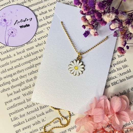 Item #050 Embrace the timeless charm of nature with our Daisy Charm Necklace, a delightful piece that combines floral elegance with sophisticated design. Handcrafted with meticulous attention to detail, this necklace features a beautifully designed daisy charm that captures the fresh and cheerful spirit of blooming flowers. The charm’s intricate detailing and high-quality gold-plated finish add a touch of refinement, making it a perfect accessory for celebrating the beauty of nature or adding a sunny touch to any outfit. Key Features: Material: Durable metal with a gold-plated finish for a luxurious look Design: Exquisitely crafted daisy charm with detailed petals and a bright, cheerful appearance Chain: Adjustable, gold-plated chain for a comfortable and customizable fit Closure: Secure lobster clasp for ease of wear and reliability Ideal for both casual and formal occasions, this charm necklace adds a touch of natural elegance to your ensemble. Wear it on its own for a classic statement or pair it with other pieces to create a look that reflects your love for flowers and refined style. Care Instructions: To maintain the beauty of your daisy charm necklace, avoid exposing it to harsh chemicals and prolonged moisture. Clean with a soft, dry cloth and store in a dry, cool place. Celebrate the beauty and simplicity of nature with this enchanting daisy charm necklace and let your style bloom with grace!