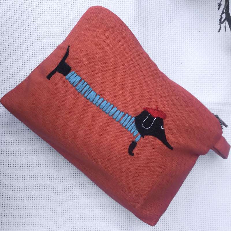 Introducing the Dog Linen Pouch, a delightful accessory that combines functionality with artisanal charm. Measuring H: 15cm and W: 20cm, this pouch is perfect for carrying small essentials like makeup, keys, or coins. - Material: Made from high-quality linen, ensuring durability and a refined texture. - Color: Vibrant orange, adding a cheerful pop of color to your belongings. - Unique Feature: Features intricate hand embroidery of a charming dog, showcasing meticulous craftsmanship. - Size and Fit: Compact size makes it easy to carry and perfect for organizing small items. - Delivery: Personalized and crafted with care, with a quick delivery time of just 5 days. - Price: LKR 1,770/= Add a touch of personality and charm to your accessories with the hand-embroidered Dog Linen Pouch, a perfect blend of craftsmanship and customization. Available now for those who appreciate unique and beautifully crafted designs