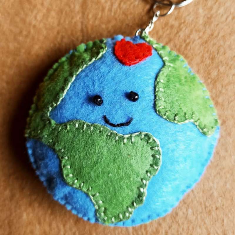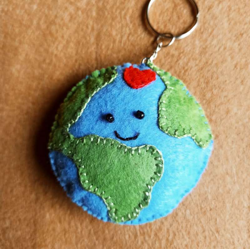 Introducing the Handmade Earth Felt Keychain, a delightful accessory that celebrates our planet. This keychain is meticulously crafted from high-quality felt, ensuring durability and a soft touch. - Material: Made from high-quality felt, providing a cozy and lasting accessory. - Design: Features a detailed Earth design, showcasing meticulous craftsmanship and a love for our planet. - Purpose: Perfect as a stylish accessory for your keys, bags, or as a unique gift for environmental enthusiasts. - Size and Fit: Compact size makes it easy to carry and a charming addition to any keyring or bag. - Versatility: Ideal for nature lovers, environmental advocates, and anyone who appreciates handmade, unique accessories. Celebrate the beauty of our planet with the Handmade Earth Felt Keychain, a perfect blend of craftsmanship and eco-friendly charm. Available now for those who love unique and beautifully crafted designs