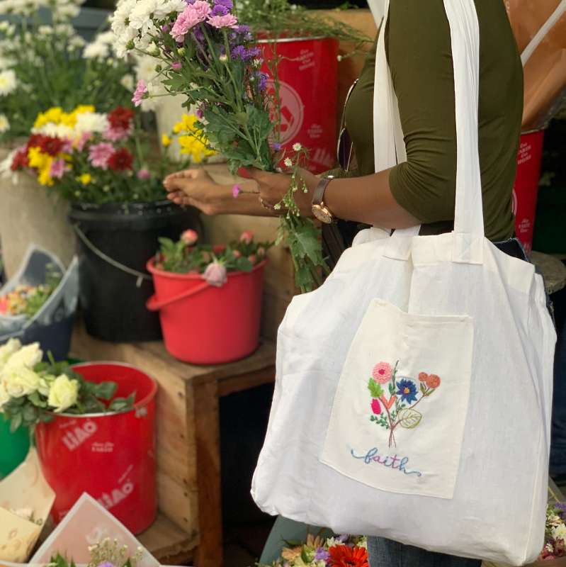 Discover the elegance of this Faith Linen Tote Bag, designed for those who appreciate unique and personalized accessories. - Size: Medium-sized tote measuring H: 40cm and W: 42cm, offering ample space for daily essentials. - Material: Made from premium white linen, ensuring a timeless look that complements any outfit. - Unique Feature: Exquisite hand embroidery on the pocket, adding a touch of artisanal charm. - Personalization: Choose your preferred color from a palette of white, black, green, yellow, off-white, pink, or red to make this bag truly yours. Delivery: 7 days