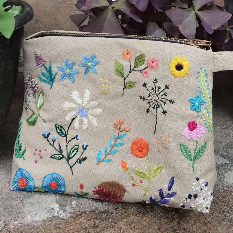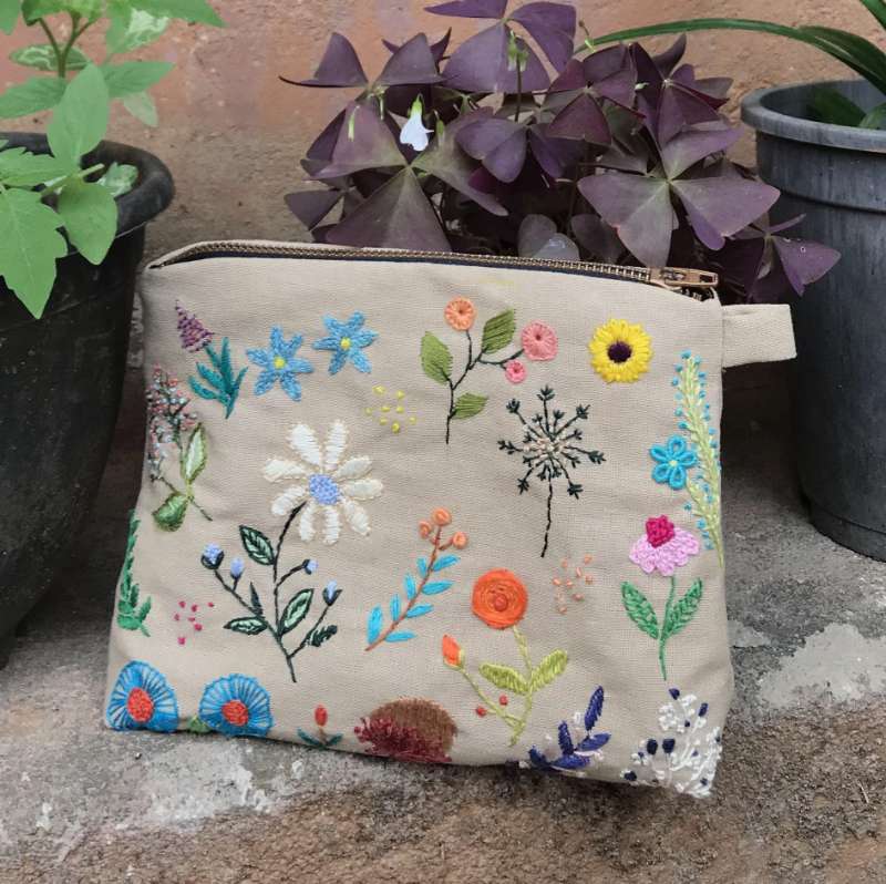 Introducing the Floral Travelling Pouch, a delightful accessory that combines functionality with artisanal charm. Measuring H: 15cm and W: 20cm, this pouch is perfect for carrying small essentials like makeup, toiletries, or travel documents. - Material: Made from high-quality linen, ensuring durability and a refined texture. - Color: Elegant beige, adding a touch of sophistication to your belongings. - Unique Feature: Features intricate hand embroidery of delicate flowers, showcasing meticulous craftsmanship. - Size and Fit: Compact size makes it easy to carry and perfect for organizing small items during travel. - Delivery: Personalized and crafted with care, with a delivery time of just 14 days. - Price: LKR 3,290/= Add a touch of elegance and charm to your travel accessories with the hand-embroidered Floral Travelling Pouch, a perfect blend of craftsmanship and customization. Available now for those who appreciate unique and beautifully crafted designs