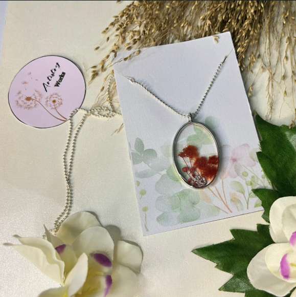 Item #P766 Elevate your style with our Elegant Resin Pendant Necklace, a stunning piece that effortlessly blends contemporary design with timeless elegance. Handcrafted with care, this necklace features a striking resin pendant that captures light beautifully, showcasing a unique play of colors and patterns within the translucent material. Each pendant is carefully poured and finished, ensuring no two pieces are exactly alike, adding a personal touch to your accessory collection. Key Features: Material: High-quality, durable resin Design: Intricate, one-of-a-kind pendant with a smooth, polished finish Chain: Adjustable, delicate silver-plated chain for a comfortable fit Closure: Secure lobster clasp Perfect for both casual and formal occasions, this necklace adds a touch of sophistication to any outfit. Wear it on its own for a statement look or layer it with other pieces for a more personalized style. Care Instructions: To maintain the beauty of your resin necklace, avoid exposing it to harsh chemicals or prolonged sunlight. Clean with a soft cloth and store in a dry place. Make a statement with this beautiful resin pendant necklace and let your unique style shine!
