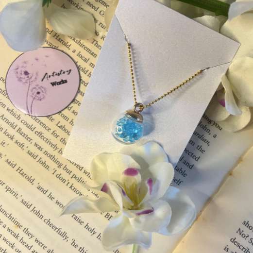 Item #096 or #097 Illuminate your look with our Glass Ball Charm Necklace, a captivating accessory that blends elegant design with a touch of whimsy. Handcrafted with precision, this necklace features a delicate glass ball charm filled with vibrant blue beads that create a mesmerizing and dynamic visual effect. The charm’s clear glass and the rich blue beads inside offer a sophisticated yet playful touch, making it a perfect statement piece for any occasion. Key Features: Material: Durable metal with a gold-plated finish and clear glass charm Design: Intricately crafted glass ball charm with blue beads inside, creating a captivating effect Chain: Adjustable, gold-plated chain for a comfortable and personalized fit Closure: Secure lobster clasp for ease of wear and reliability Ideal for both casual and formal outfits, this charm necklace adds a unique and elegant flair to your ensemble. Wear it alone for a striking statement or layer it with other pieces to enhance your style with a touch of individuality. Care Instructions: To maintain the beauty of your glass ball charm necklace, avoid exposing it to harsh chemicals and prolonged moisture. Clean with a soft, dry cloth and store in a dry, cool place. Add a touch of enchantment to your jewelry collection with this beautiful glass ball charm necklace and let your style shine brightly!