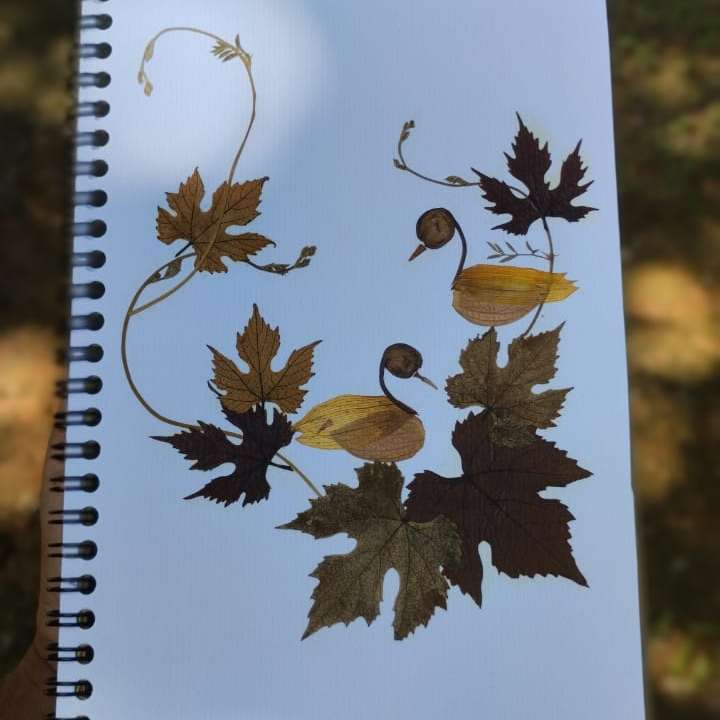 Handcrafted Birds & Flora Notebook Immerse yourself in nature’s splendor with the Handcrafted Birds & Flora Notebook, a beautifully designed journal that celebrates the harmony of avian beauty and botanical artistry. This notebook features a meticulously handcrafted cover adorned with an exquisite design of birds, flowers, and foliage, all created from real, preserved botanicals. The cover showcases a vibrant array of birds gracefully interacting with an intricate display of flowers and leaves. Each element is carefully pressed and arranged to reflect the delicate beauty of nature, resulting in a unique and visually captivating design. Not only is the cover a stunning piece of art, but it is also durable, providing a stylish and protective layer for your notes and sketches. Inside, you'll find smooth, high-quality pages that enhance your writing experience, making it perfect for journaling, planning, or creative expression. The Handcrafted Birds & Flora Notebook blends eco-friendly materials with expert craftsmanship, resulting in a product that is as sustainable as it is beautiful. Ideal for those who appreciate the finer details of handmade items and the charm of nature-inspired design, this notebook also makes a thoughtful gift for anyone who values unique stationery and enjoys capturing their thoughts in style