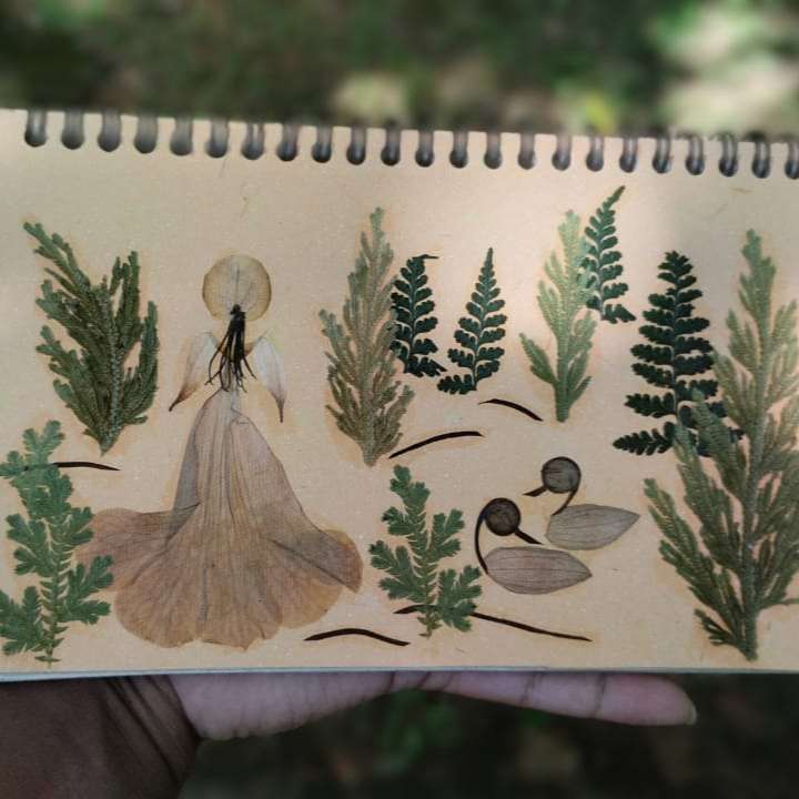 Handcrafted Nature’s Stroll Notebook Experience the serene beauty of nature with the Handcrafted Nature’s Stroll Notebook. This elegant journal features a cover that beautifully captures the essence of a girl leisurely walking through a lush natural landscape, brought to life with real, preserved botanicals. The cover showcases a tranquil scene of a girl strolling amidst a backdrop of delicately pressed flowers and leaves, creating a harmonious blend of natural beauty and graceful movement. The intricate design evokes a sense of peaceful exploration and connection with the outdoors. Durable and stylish, the cover provides a protective layer for your notes and sketches. Inside, you'll find smooth, high-quality pages that offer an exceptional writing experience, perfect for journaling, planning, or creative pursuits. The Handcrafted Nature’s Stroll Notebook combines eco-friendly materials with artisanal craftsmanship, resulting in a product that is both sustainable and visually stunning. Ideal for those who cherish the beauty of nature and appreciate finely crafted items, this notebook also makes a thoughtful gift for anyone who enjoys capturing their thoughts and experiences in a journal that celebrates the serenity of a walk through nature
