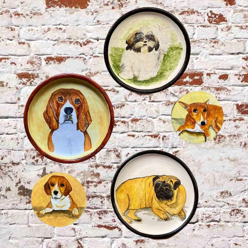 Capturing Your Furry Friend in Art Are you searching for a unique keepsake to cherish your beloved pet? Look no further than our handprinted pet portrait clay plates! Crafted with care and attention to detail, these plates immortalize your furry friend in stunning artistry. Perfect Size for Your Needs Our plates are available in a single, ideal size of 8 inches in diameter. This size offers ample space to capture every intricate detail of your pet's features. Whether it's their soulful eyes, unique coat pattern, or favorite accessories, we can bring their essence to life on our plates. Easy Ordering Process Ordering a custom plate is a breeze. Simply place your order and upload a photo of your pet that you’d like us to use. We'll take care of the rest, adding special details like your pet's name or important dates. Have multiple pets? No problem! We can paint them all on one plate, creating a truly personalized and meaningful keepsake. Memorial Options Available Looking for a memorial piece? We can include dates of birth and/or passing, along with a short sentiment or memorable words, to honor your pet's legacy and the special bond you shared. Thoughtful Packaging Each order is carefully packaged to ensure your pet portrait clay plate arrives safely, ready to be displayed and treasured for years to come. Thank you for considering our handprinted pet portrait clay plates as a heartfelt gift for your cherished pet