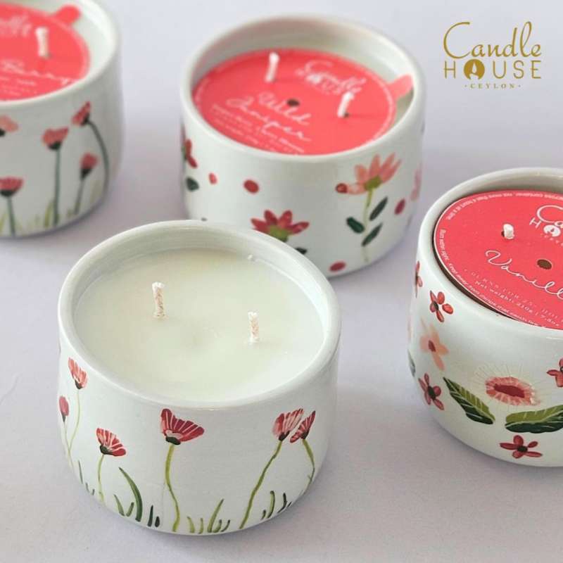 Elevate your space with our Hand Painted Ceramic Aromatherapy Candle, a perfect fusion of artistry and relaxation. Each candle features a unique, Hand Painted Ceramic container, showcasing intricate designs that add a touch of elegance to any room. Available in three enchanting scents—Frosted Berry, Wild Juniper, and Vanilla — these candles offer a sensory journey that soothes and delights. Frosted Berry: Indulge in the cozy allure of our Frosted Berry Aromatherapy Ceramic Candle, a rich blend of sharp cranberries, sweet apples, and spices. Each candle features exclusive hand-drawn floral designs, adding elegance to any space. Crafted for relaxation or hosting, it makes a charming gift with its unique design and enchanting aroma. Wild Juniper: Experience the crisp, invigorating aroma of juniper berry, cedarwood, and eucalyptus, evoking the essence of the outdoors and a breath of fresh air. Perfect for creating a calming ambiance in any space, this candle also radiates a rich, creamy vanilla scent to soothe and welcome. Vanilla: The candle radiates a rich, creamy vanilla scent, crafted to calm and welcome, perfect for moments of relaxation or hosting. Beyond its role as a captivating home decor, it stands as an exceptional gift choice for any occasion, promising to charm with its unique design and enchanting aroma. Handcrafted with care, these candles not only enhance your environment with their beautiful scents but also serve as a stunning decorative piece. Light one up and let the ambiance transform your space into a haven of peace and beauty. Sizing Information: Perfect as a unique, handmade decorative candle for living rooms, lounges, and dining spaces. Burn time: 25 hours Diameter: 3.5″/ Height: 2.5″ Gross weight: 505g /18 oz Ingredients: All our candles are hand-poured using locally sourced premium paraffin wax. They have 100% cotton core wicks and only fine fragrance oils and essential oils are used. How to use: Trim your candle’s wick to 1/4″ before each lighting or once your candle has cooled. Discard the snipped portion in the trash; never leave wick trimmings in your candle jar. Allow the wax to melt to the edges of the tin during each burn to prevent tunneling, lighting them only for 4 hours at a time. Safety first ! Never leave a candle burning unattended, near a draft, or in reach of children or pets. Don’t burn your candle for more than 4 hours at a time. Do not allow your wick to curl over, as this can create a larger than normal flame. Stop burning your candle when only 1/4″ of wax remains. Do not pick up a burning candle or immediately after it’s been blown out. Protect the surface underneath the candle no matter the material