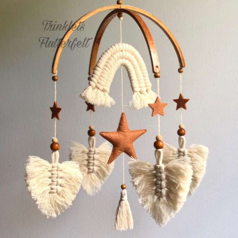 Enhance your baby's nursery with the Macrame Baby Mobile, designed to add a touch of whimsy and charm to your child's space. Crafted with care and attention to detail, this mobile comes in a variety of ready-made designs, ensuring there's something to suit every nursery decor. Key Features: - Handcrafted Quality: Each mobile is meticulously crafted from soft, high-quality felt, ensuring a gentle and soothing presence in your baby's room. - Ready-Made Designs: Choose from a variety of adorable themes and color schemes, ranging from cute animals to dreamy clouds, to find the perfect match for your nursery aesthetic. - Safe and Non-Toxic: Crafted with baby-safe materials, these mobiles provide peace of mind for parents, knowing that their little one's safety is always a top priority. - Perfect for Nurseries: Whether it's to soothe your baby to sleep or simply add a delightful touch to their cot, these mobiles are the perfect addition to any nursery decor. - Ideal Gift: Looking for the perfect baby shower gift or present for new parents? Our Macrame Baby Mobiles are sure to delight and make a memorable impression. Price and Add-Ons: - Price Differs with Designs: Starting from LKR 3000/- onwards - Delivery: Within 5-7 business days