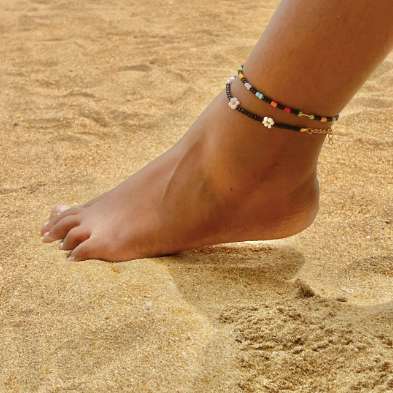 Step up your beachwear game with our Black Stack Beach Anklets Set of 2, a chic and versatile accessory that combines effortless style with a touch of sophistication. These anklets are designed to capture the essence of coastal coolness, offering a sleek and modern look that complements any beach ensemble. Each anklet in this set features a minimalist black design that’s both striking and versatile. Crafted with high-quality materials, they provide a subtle yet stylish contrast to the vibrant hues of summer, making them a perfect choice for layering or wearing solo. The set includes two matching anklets that can be stacked for a bold statement or worn individually for a more understated look. The adjustable design ensures a comfortable and secure fit for most ankle sizes, while the durable construction makes these anklets ideal for both beach adventures and everyday wear. Whether you’re strolling along the shore or adding a touch of beachy elegance to your casual outfits, these anklets are the perfect accessory to elevate your style. Key Features: Sleek Black Design: A minimalist black color scheme offers a modern and versatile look. Stackable Style: Includes two matching anklets for layering or wearing separately. Adjustable Fit: Designed with adjustable clasps to accommodate most ankle sizes comfortably. Durable Construction: Made from high-quality materials to withstand both beach adventures and daily wear. Transform your beach look with the effortless sophistication of the Black Stack Beach Anklets Set of 2. Embrace the coastal chic vibe and let your style shine with every step you take