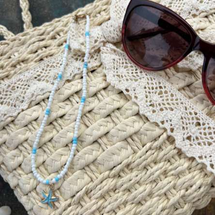 Embrace the enchanting beauty of the sea with our Blue and White Starfish Necklace. This exquisite piece captures the essence of coastal elegance, featuring a striking starfish charm against a backdrop of classic blue and white hues. Perfect for adding a touch of nautical flair to any outfit, this necklace embodies the tranquil and timeless allure of the ocean. The necklace showcases a beautifully detailed starfish pendant, designed with intricate textures that mimic the natural beauty of real starfish found along the shore. The blue and white color scheme evokes the classic contrast of sea and foam, creating a fresh and sophisticated look. Each element is crafted with care, ensuring that this necklace not only looks stunning but also feels delightful to wear. Designed with versatility in mind, the necklace includes an adjustable chain, allowing you to customize the length for a perfect fit. Its lightweight design makes it ideal for both casual beach outings and more polished occasions, adding a touch of coastal elegance wherever you go. Key Features: Starfish Pendant: A detailed blue and white starfish charm captures the essence of ocean beauty and charm. Classic Color Palette: The blue and white hues evoke the serene and refreshing colors of the sea. Adjustable Chain: Features an adjustable chain for a personalized fit and versatile styling options. Lightweight and Elegant: Designed for comfort and style, perfect for daily wear or special occasions. Celebrate the beauty of the coast and let your style shine with the Blue and White Starfish Necklace. This charming piece is a perfect reminder of the ocean's elegance, making every day a little more coastal and a lot more beautiful