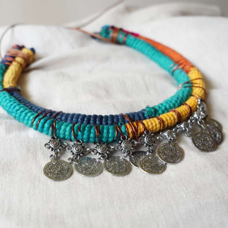 3 Strand Noah Necklace by Jewellery by Noah Make a bold statement with the 3 Strand Noah Necklace from Jewellery by Noah. This 100% handmade necklace showcases the vibrant spirit of Sri Lankan craftsmanship, featuring a chunky design adorned with charming details. Features: Artisanal Craftsmanship: Each necklace is meticulously handcrafted by skilled Sri Lankan artisans, ensuring unique character and superior quality. Materials: Made with natural, sustainable materials, the 3 Strand Noah Necklace offers both beauty and a connection to nature. Design: The chunky three-strand design adds depth and boldness, while the intricate charms bring a playful and eclectic touch, perfect for making a statement. Island Essence: Infused with the vibrant spirit of Sri Lanka, this necklace is a testament to the island's rich cultural heritage and artistic soul. Charms: The charming details add a touch of whimsy and personality, making this necklace a unique and standout piece in any jewelry collection. Embrace the bold elegance of the 3 Strand Noah Necklace and celebrate the timeless artistry and vibrant spirit of Sri Lankan craftsmanship in every wear