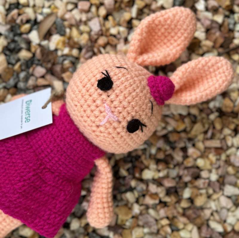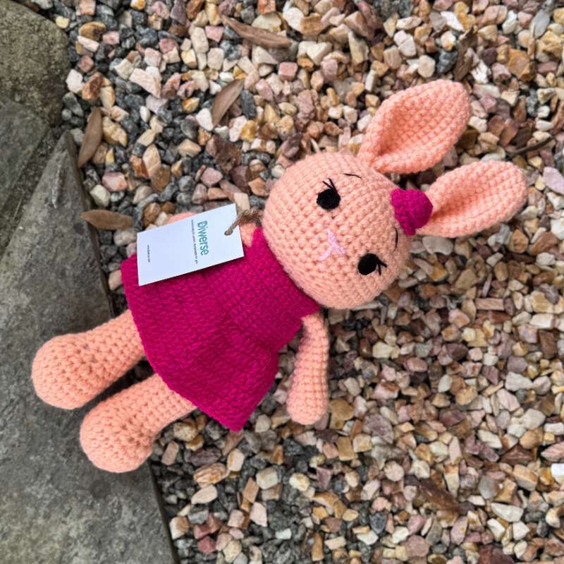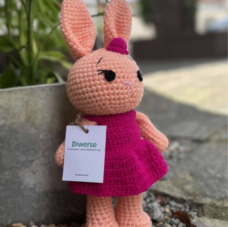 Introducing our Handmade Pink Bunny, dressed to impress in a vibrant hot pink dress! This charming plush toy combines the sweetness of a classic bunny with a splash of bold, stylish flair, making it a delightful addition to any collection or a memorable gift. Key Features: Artisanal Craftsmanship: Each Pink Bunny is meticulously handcrafted with care and precision. Skilled artisans use high-quality materials and techniques to create a plush toy that is both visually appealing and wonderfully soft to the touch. Enchanting Design: The bunny features a soft pink fur that is complemented by a striking hot pink dress. The combination of these colors creates a playful and eye-catching look, making this bunny a standout piece in any setting. Premium Materials: Made from high-quality, hypoallergenic fabrics, the Pink Bunny is designed for durability and comfort. The plush materials ensure that the bunny remains a cherished toy for cuddles and play, while the dress is crafted to be vibrant and resistant to wear. Perfect Size: Designed with just the right proportions for hugging and carrying, this Pink Bunny is ideal for children and adults alike. Its size makes it a great companion for bedtime, playtime, or as a charming decorative item. Versatile Use: This Pink Bunny in a hot pink dress is perfect for a variety of occasions, including birthdays, holidays, or as a special treat for any bunny lover. It also makes a lovely addition to nurseries, playrooms, or as a whimsical touch in any room. Handcrafted Quality: Each bunny is crafted with an emphasis on quality and detail, reflecting the artisanal skills involved in creating a unique and special toy. The handcrafted nature adds a personal touch that enhances the overall charm of the bunny. Easy to Care For: To keep your Pink Bunny looking its best, gently spot clean with a damp cloth. For more thorough cleaning, follow the care instructions provided to ensure the longevity of the toy and its vibrant colors. Eco-Friendly Craftsmanship: We are committed to using sustainable practices, and our Pink Bunny is made from eco-friendly materials and methods. Enjoy a beautifully crafted toy that is both environmentally responsible and adorable. Customization Details: While our Pink Bunny comes dressed in a hot pink dress, we offer customization options for different dress colors or accessories. If you have specific preferences or would like to create a unique look, please contact us for personalized assistance. Add a burst of color and joy to your home with our Handmade Pink Bunny in a Hot Pink Dress. Order today to bring a playful and charming companion into your life or to give a special gift that’s sure to delight