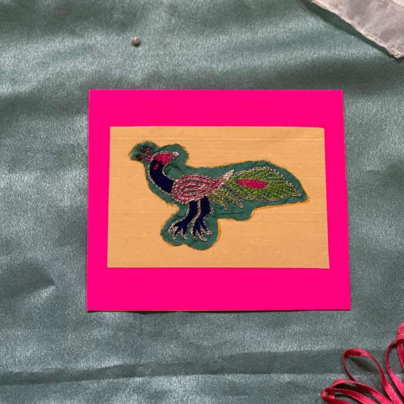 5. Handmade Fabric Peacock Greeting Card