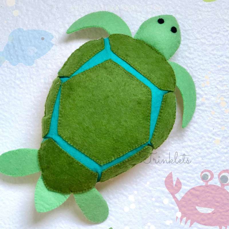Introduce your little one to colors and textures with this handmade felt turtle toy. Designed for babies and toddlers, it's both visually stimulating and safe. Key Features: - Material: Eco-friendly felt fabric - Colors: Green - Size: 9x5 inches, perfect for small hands - Stuffing: Soft, hypoallergenic polyester fiberfill - Design: Friendly face, encouraging play - Craftsmanship: Meticulously handmade for unique details and quality Safety: - Non-toxic: Safe materials for children - Contains small parts - eyes Benefits: - Sensory Development: Bright colors and soft texture - Motor Skills: Easy to grasp - Imaginative Play: Encourages creativity Care Instructions: - Cleaning: Spot clean with mild soap; air dry - Durability: Regular checks for wear recommended