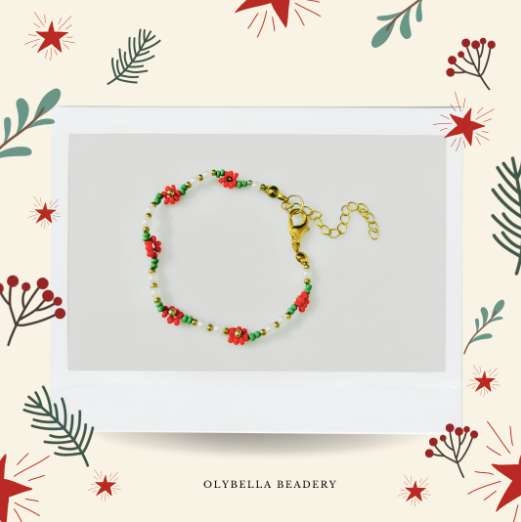 Add a touch of blooming elegance to your holiday season with our Handmade Floral Christmas-Themed Bracelet. This beautifully crafted piece combines the timeless beauty of flowers with festive holiday cheer, creating a unique accessory that stands out during the most wonderful time of the year. Features: Handmade Beauty: Each bracelet is lovingly handcrafted by skilled artisans, ensuring that every piece is a unique work of art. The intricate floral design is thoughtfully created with high-quality materials, showcasing both elegance and festive charm. Festive Floral Touch: The bracelet features delicate floral elements intertwined with subtle Christmas accents. Expect to find charming details like holly leaves, poinsettias, and snowflakes crafted into the design, all rendered in rich, holiday-inspired colors. Adjustable Fit: Designed with versatility in mind, this bracelet includes an adjustable clasp, allowing you to customize the fit for optimal comfort. Whether worn snugly or loosely, it drapes beautifully on your wrist. Perfect Holiday Accessory: Ideal for holiday parties, family gatherings, or even as a festive finishing touch to your everyday outfits, this bracelet adds a sophisticated touch of seasonal spirit. Thoughtful Gift Idea: This floral Christmas-themed bracelet makes a heartfelt gift for loved ones who appreciate both elegance and the magic of the holiday season. It’s a meaningful way to share festive joy and style. Quality Craftsmanship: Made with premium beads and durable components, this bracelet is designed to be a lasting part of your holiday collection. Each element is chosen for its quality and beauty, ensuring it remains a cherished piece for years to come. Celebrate the season with a floral twist and embrace the beauty of Christmas with our Handmade Floral Christmas-Themed Bracelet. Adorn your wrist with a piece that blends the elegance of flowers with the warmth of the holidays, creating a stunning accessory that’s perfect for this festive time of year
