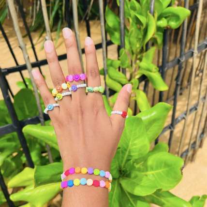 Brighten up your accessory game with our Multicolored Beaded Stack Bracelet and Ring Set. This vibrant collection combines playful colors and versatile designs to create a bold statement of style and fun. The set includes an array of beaded bracelets and matching rings, each featuring a lively mix of colors that evoke a sense of joy and creativity. The bracelets, designed to be stacked, showcase an assortment of colorful beads arranged in a harmonious blend of hues. The rings complement this vibrant theme with matching beaded designs that add a touch of whimsy to your look. Crafted with high-quality materials, each piece in the set is designed for durability and comfort. The bracelets feature adjustable closures to ensure a perfect fit, while the rings are available in various sizes to suit different fingers. Whether worn together for a striking impact or separately for a more understated look, this set is perfect for adding a burst of color to any outfit. Key Features: Vibrant Multicolored Design: A lively mix of colorful beads creates a playful and eye-catching look. Stackable Bracelets: Includes multiple beaded bracelets designed to be stacked for a bold, layered effect. Matching Rings: Beaded rings complement the bracelet set, adding a coordinated touch to your style. Adjustable Fit: Bracelets feature adjustable closures for a customizable fit; rings come in various sizes for a comfortable wear. High-Quality Craftsmanship: Made with durable materials for long-lasting wear and everyday comfort. Celebrate your style with the Multicolored Beaded Stack Bracelet and Ring Set, where fun colors and versatile designs come together to create an accessory set that’s as dynamic and vibrant as you are