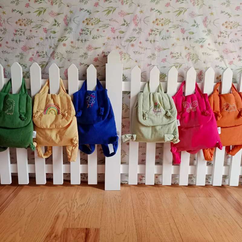 Handmade Linen Toddler Backpack Elevate your toddler’s adventures with the Linen Toddler Backpack—a charming blend of style, durability, and practicality. Crafted from high-quality linen, this backpack is lightweight yet robust, designed to accompany your little one through all their daily explorations. Features: Embroidery Stitch Design: The playful embroidery adds a whimsical touch, igniting your toddler’s imagination and making their backpack uniquely theirs. Adjustable Shoulder Straps: Designed for comfort, the adjustable straps ensure a snug and customizable fit, making it easy for toddlers to carry their essentials comfortably. Easy to Clean: The backpack is conveniently easy to maintain. Simply spot clean with a damp cloth or machine wash as needed, ensuring it stays fresh and ready for every outing. Available Colors: Dark Blue: A classic and versatile choice. Forest Green: Perfect for nature-loving little adventurers. Cherry Red: Bright and bold for a fun pop of color. Bubblegum Pink: A sweet and playful option. Easter Yellow: Cheerful and sunny for brightening any day. Mint Green: Refreshing and stylish for everyday use. The Linen Toddler Backpack is the perfect blend of functionality and flair, offering a durable and stylish solution for carrying essentials. Ideal for outings, playdates, or school, this backpack combines practicality with a touch of fun, making it a delightful choice for both parents and toddlers