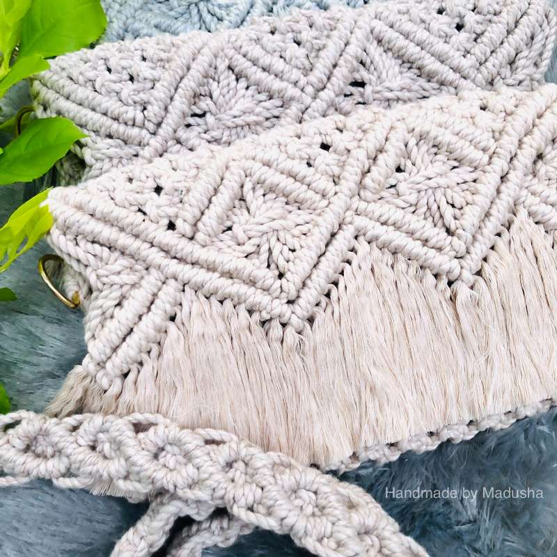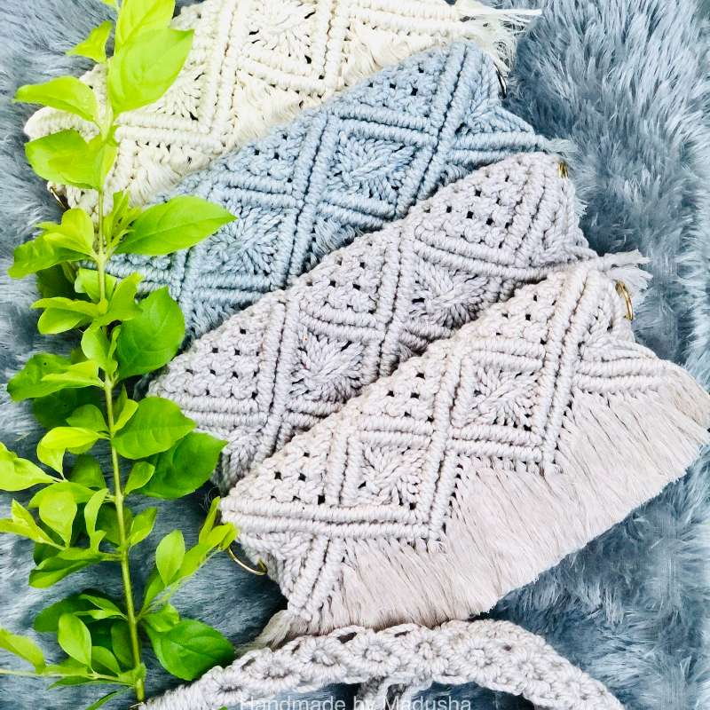 Elevate your accessory collection with our Handmade Macramé Phone Bag, a fusion of artisanal craftsmanship and practical design. Perfectly sized and exquisitely detailed, this bag is a testament to the beauty of handcrafted artistry. Dimensions: Bag Size: 10" x 6" Strap Length: 45" Handcrafted with meticulous care, this phone bag features elegant macramé knotting that highlights the skill and dedication of its artisan creator. The 10" x 6" size provides ample space for your phone and small essentials, ensuring they stay secure and easily accessible. The 45-inch strap offers the convenience of hands-free wear, allowing you to carry your phone comfortably while on the go. Each bag is a unique creation, reflecting the rich tradition of handmade design. Whether you're dressing up for a special occasion or adding a touch of artisanal charm to your everyday outfit, this macramé phone bag is the perfect blend of function and style. Embrace the art of handmade excellence with a bag that stands out as beautifully as it performs
