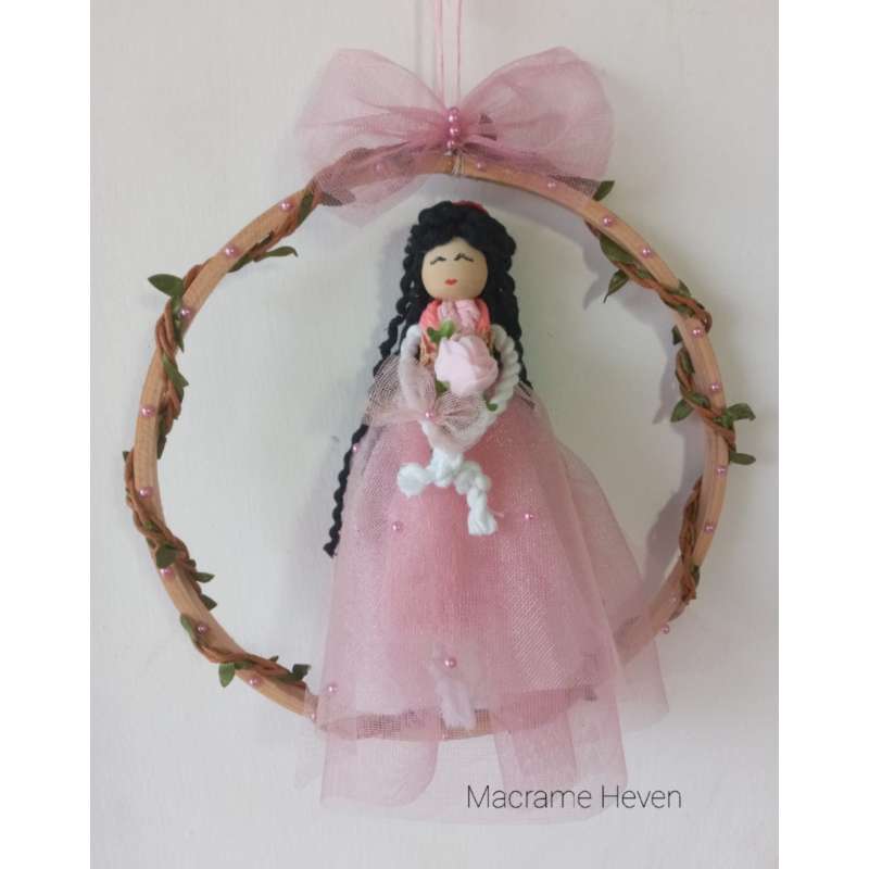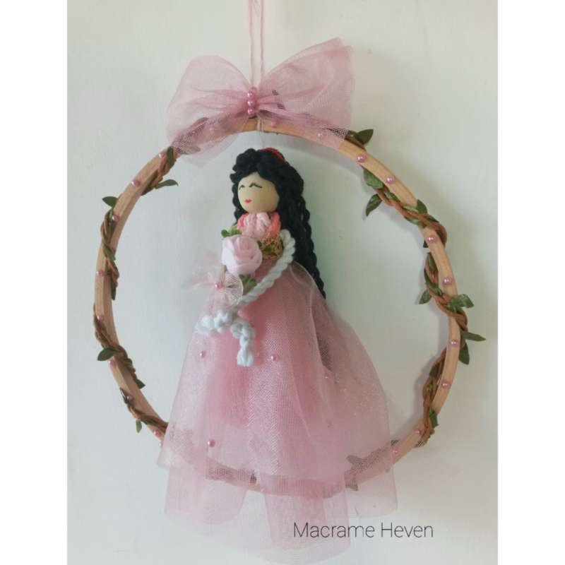 Add a whimsical and artistic touch to your home decor with our Handmade Macrame Doll Art featuring a single doll in a stunning long pink dress. This charming piece combines traditional macrame craftsmanship with playful design, creating a unique and eye-catching decoration for any room. Key Features: Artisanal Craftsmanship: Each doll is meticulously handcrafted using traditional macrame techniques. Skilled artisans create intricate knots and patterns to bring the doll to life, resulting in a beautifully textured and detailed piece of art. Elegant Design: The doll is dressed in a flowing, long pink dress, adding a touch of grace and sophistication. The delicate macrame work and the vibrant pink color of the dress create a striking visual effect, making it a standout piece in any setting. Charming Details: The doll’s dress is adorned with fine macrame detailing that highlights the craftsmanship and attention to detail. The flowing design of the dress gives the doll a whimsical, fairy-tale quality, adding a touch of magic to your decor. Versatile Decoration: Ideal for a variety of settings, this macrame doll art makes a delightful addition to nurseries, children’s rooms, living spaces, or even as a unique accent piece in a cozy reading nook. Its playful and artistic design complements a range of interior styles, from bohemian to classic. Premium Materials: Crafted from high-quality cotton or synthetic fibers, the doll is designed to be both durable and visually appealing. The materials are chosen for their softness and resilience, ensuring that the doll remains a beautiful and cherished part of your decor. Easy to Display: The doll is designed with a sturdy hanging loop or base, making it easy to display on walls, shelves, or other surfaces. Its lightweight construction allows for versatile placement options throughout your home. Eco-Friendly Craftsmanship: We are committed to sustainable practices, and our macrame doll art is made using eco-friendly materials and methods. Enjoy a decorative piece that is both stylish and environmentally responsible. Care Instructions: To maintain the beauty of your macrame doll art, gently dust with a soft cloth. Avoid exposure to excessive moisture to preserve the integrity of the fibers and the vivid color of the dress. Customization Details: While this particular doll features a long pink dress, we offer customization options for different colors and dress styles. If you have specific design preferences or would like a custom color for the dress, please contact us for personalized assistance. Bring a touch of handcrafted elegance and whimsy to your decor with our Handmade Macrame Doll Art in a Long Pink Dress. Order today to add a unique and enchanting element to your living space