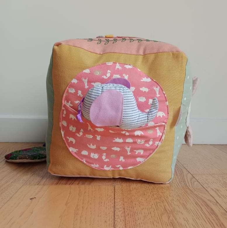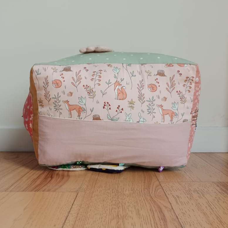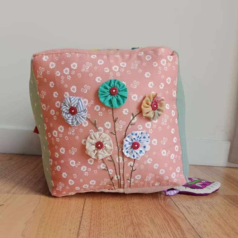 Handmade Meadow-Themed Sensory Activity Pillow Discover a world of tactile wonder with our Meadow-Themed Sensory Activity Pillow—a beautifully designed sensory toy that brings the charm of a meadow right into your baby’s playtime. Key Features: Soft, Plush Fabric: Crafted from ultra-soft, plush materials, this activity pillow provides a cozy and inviting surface for your baby to explore and enjoy. Stimulates Sensory Development: Designed to enhance sensory development, the pillow features an array of textures, colors, and interactive elements inspired by the vibrant meadow. Vibrant Colors and Patterns: The meadow theme includes delightful patterns and colors that captivate your baby’s visual senses and stimulate their curiosity. Crinkly Surfaces and Tactile Elements: Equipped with crinkly surfaces and various tactile elements, the pillow encourages sensory exploration and helps develop fine motor skills. Safe for Infants: Made from non-toxic, baby-safe materials, the sensory pillow ensures a safe and enjoyable play experience. Easy to Clean: The pillow is designed for easy maintenance. Simply spot clean or machine wash as needed to keep it fresh and ready for play. Lightweight and Portable: Its lightweight design makes it easy to move and perfect for travel, so your baby can enjoy sensory play anywhere. Promotes Motor Skills and Cognitive Development: The engaging features of the pillow support the development of motor skills and cognitive abilities, enriching your baby’s early learning experiences. Specifications: Dimensions: 12 inches x 12 inches—ideal for comfortable exploration and interaction. Suitable for Ages: 3 months and above, designed to grow with your baby’s developmental needs. The Meadow-Themed Sensory Activity Pillow is a charming and educational addition to your baby’s toy collection. With its engaging textures and delightful meadow theme, it offers a perfect blend of comfort, play, and developmental benefits