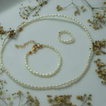 Elevate your jewelry collection with our Classy Pearl Beaded Set, featuring a matching necklace, bracelet, and ring. This elegant set combines the timeless beauty of pearls with refined design, creating a sophisticated ensemble perfect for any occasion. Features: Elegant Design: Each piece in this set is meticulously crafted to showcase the classic beauty of pearls. The set includes a necklace, bracelet, and ring, all featuring lustrous pearls that exude timeless sophistication and grace. High-Quality Pearls: The set is made with premium pearls, selected for their smooth texture and radiant shine. Each pearl adds a touch of luxury and elegance, making the set perfect for formal events or special occasions. Necklace: The necklace features a simple yet elegant design, with pearls delicately strung to create a graceful and refined look. It’s versatile enough to complement both evening wear and daytime attire, making it a staple piece for your jewelry collection. Bracelet: The bracelet mirrors the elegance of the necklace, with pearls arranged to wrap elegantly around your wrist. Its adjustable design ensures a comfortable fit, and it can be worn alone or paired with other accessories for a layered look. Ring: The matching ring completes the set with a classic pearl centerpiece. Its minimalist design highlights the beauty of the pearl, making it a sophisticated choice for any occasion. Versatile Styling: This set is perfect for adding a touch of elegance to any outfit, whether it’s for a special event or everyday wear. The timeless design ensures that each piece remains a cherished part of your jewelry collection. Thoughtful Gift: The Classy Pearl Beaded Set makes an ideal gift for loved ones who appreciate classic and elegant jewelry. It’s a thoughtful choice for birthdays, anniversaries, weddings, or any celebration of refinement and grace. Quality Craftsmanship: Each piece is crafted with high-quality materials and attention to detail, ensuring both beauty and durability. The set is designed to retain its elegance and charm over time. Enhance your accessory collection with the Classy Pearl Beaded Set. Combining a necklace, bracelet, and ring, this elegant trio captures the timeless beauty of pearls, offering a refined and sophisticated look that complements any ensemble