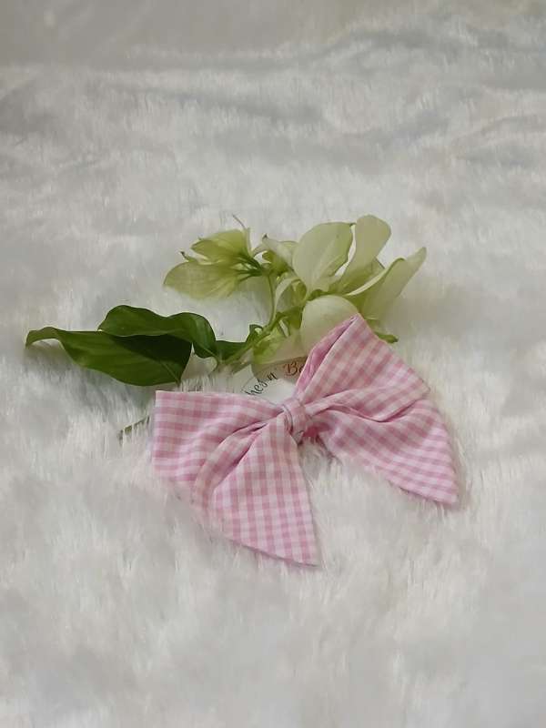 5. Handmade Pink Check Sailor Bow Single Hair Clip