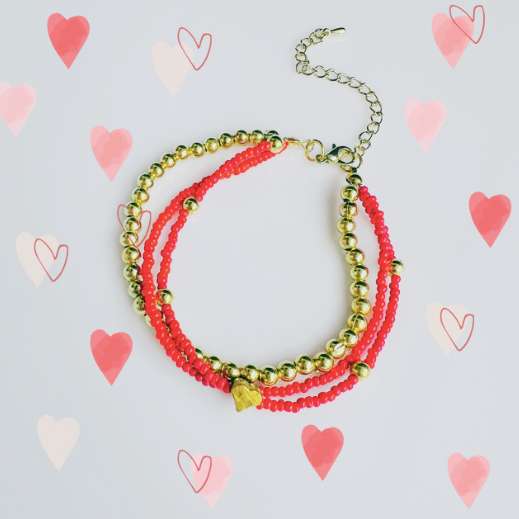Add a touch of vibrant sophistication to your accessory collection with our Red and Gold Beaded Layered Bracelet. This stunning piece combines bold red beads with gleaming gold accents, creating a layered design that effortlessly merges modern style with timeless elegance. Features: Striking Design: The bracelet features a layered design, with multiple strands showcasing a harmonious blend of red and gold beads. The layers create a rich texture and depth, making it a standout accessory that draws attention. Bold Red Beads: The vibrant red beads add a bold and lively touch, symbolizing passion and confidence. Their rich color provides a dramatic contrast to the gold accents, enhancing the bracelet’s overall appeal. Gleaming Gold Accents: Complementing the red beads are exquisite gold accents that add a touch of luxury and sophistication. The gold elements are carefully chosen for their shine and durability, providing a beautiful contrast to the red beads. Versatile Styling: This bracelet is perfect for adding a pop of color and elegance to both casual and formal outfits. Its versatile design allows it to be worn alone as a statement piece or stacked with other bracelets for a layered look. Adjustable Fit: Designed for comfort and versatility, the bracelet features an adjustable clasp or extender chain. This ensures a perfect fit for various wrist sizes, allowing you to wear it with ease and confidence. Quality Craftsmanship: Crafted with high-quality beads and durable components, this bracelet is designed to be both beautiful and long-lasting. The meticulous craftsmanship ensures that the bracelet maintains its charm and elegance over time. Thoughtful Gift: The Red and Gold Beaded Layered Bracelet makes a fantastic gift for those who appreciate bold, stylish jewelry. It’s an ideal choice for birthdays, anniversaries, or any special occasion that calls for a touch of elegance and flair. Elevate your style with the Red and Gold Beaded Layered Bracelet. This eye-catching piece combines vibrant red beads with luxurious gold accents, creating a stunning and versatile accessory that adds a touch of sophistication to any look