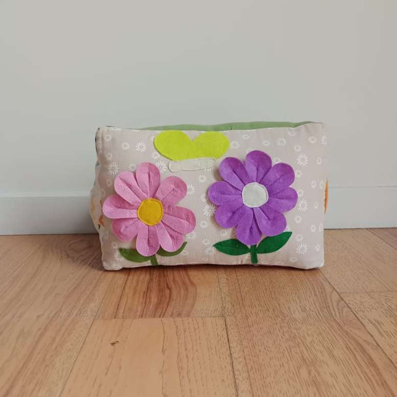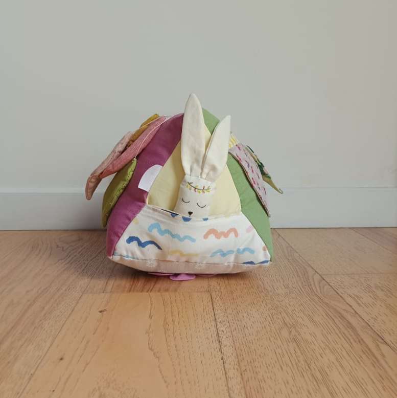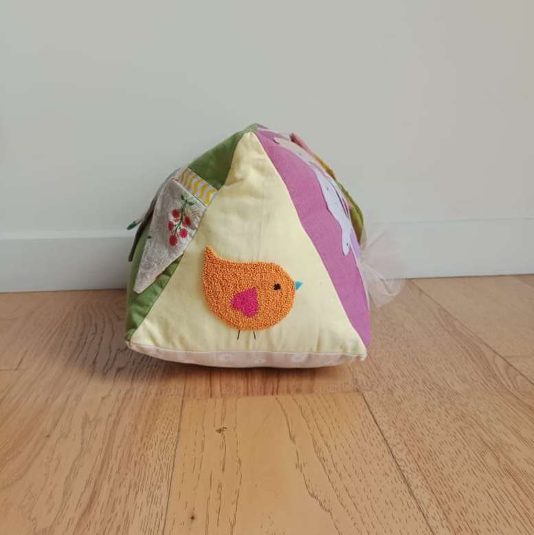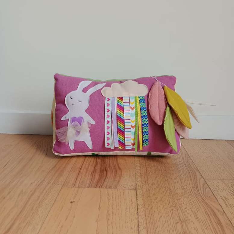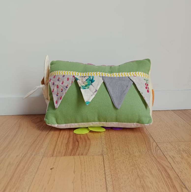 Outdoor Sensory Activity Pillow: Engaging Exploration for Little Learners! Introduce your little one to a world of sensory adventure with our Outdoor Sensory Activity Pillow—designed to captivate and educate through a variety of engaging textures and interactive features. Key Features: Triangular Design: The unique triangular shape encourages exploration from multiple angles, inviting curiosity and interactive play. Sensory Rich Materials: Crafted with a combination of soft fleece, crinkly fabric, and bumpy textures, this activity pillow provides a diverse tactile experience that stimulates sensory development. Interactive Elements: Equipped with ribbons and soft fabrics, the pillow helps enhance fine motor skills while offering an engaging play experience. Versatile Play Options: Ideal for both quiet moments and stimulating activities, this pillow adapts to your child's needs, providing comfort and entertainment in one. Portable and Easy to Clean: Its lightweight design and removable cover make it easy to take on-the-go and simple to clean, ensuring hassle-free maintenance. Specifications: Material: Soft fleece, satin, crinkly fabric, and ribbons—carefully selected for sensory engagement and durability. Dimensions: 18 inches (base) x 15 inches (height) x 15 inches (sides)—perfectly sized for little explorers. Recommended Age: Suitable for children aged 6 months and up, designed to support early developmental stages. The Outdoor Sensory Activity Pillow is a delightful addition to any playtime routine, offering a blend of sensory stimulation and versatile play. Ideal for both home and travel, it provides endless opportunities for exploration and growth