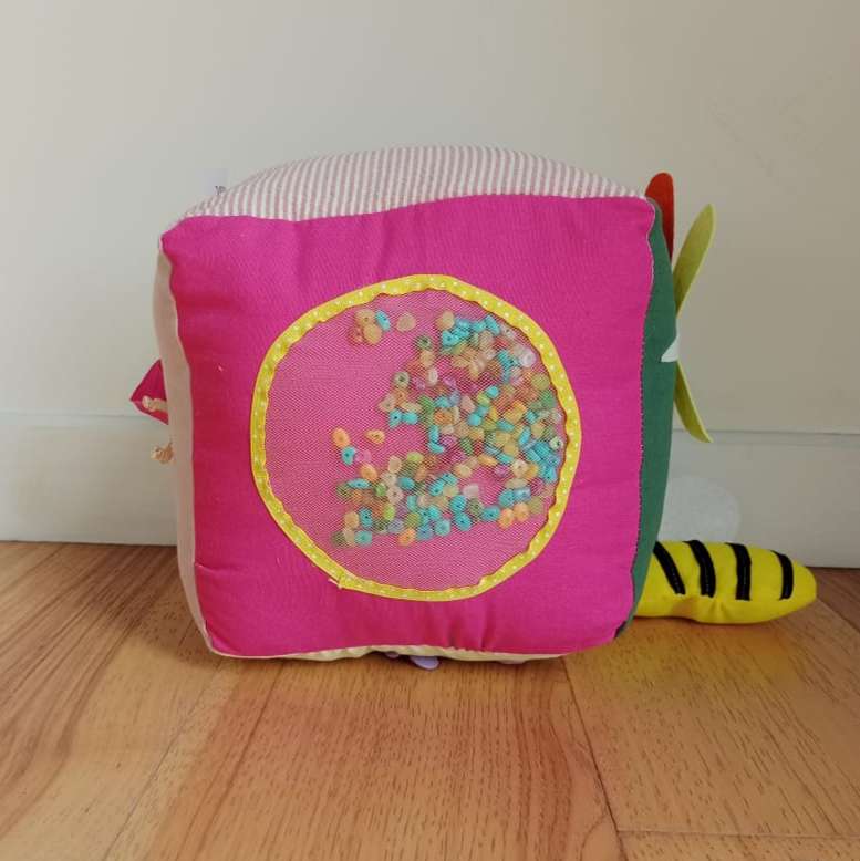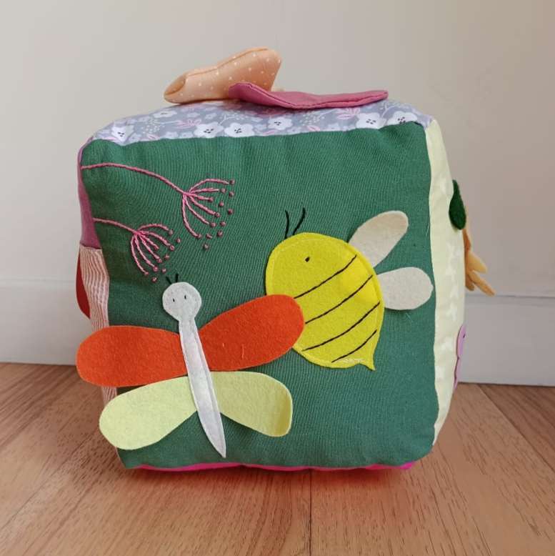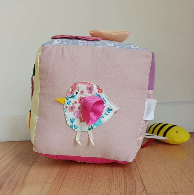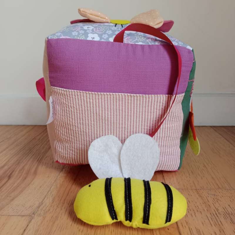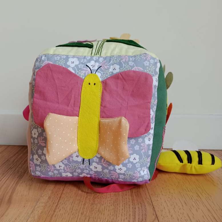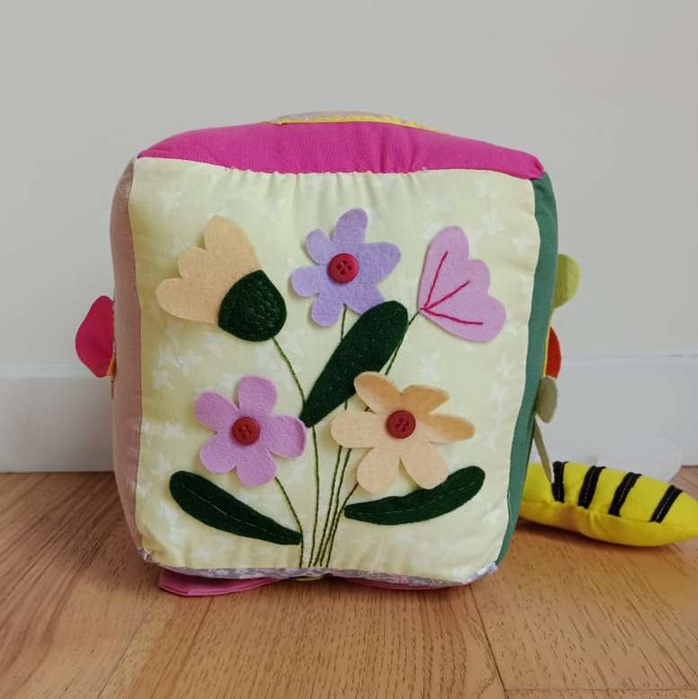 Handmade Spring Sensory Cube Introduce your little ones to the magic of the season with the Spring Sensory Cube—a delightful exploration of springtime textures and sensations designed to captivate young imaginations. This engaging cube invites children to experience the essence of spring through a variety of tactile and sensory interactions. Product Highlights: Seasonal Sensory Exploration: Each side of the Spring Sensory Cube features unique textures and elements that evoke the wonders of spring. From the softness of blooming petals to the freshness of raindrops, this cube offers a rich sensory journey that celebrates the season. Encourages Discovery and Imaginative Play: Designed to stimulate cognitive development and sensory exploration, the cube provides diverse sensory experiences that encourage curiosity and creativity. Feel the warmth of sunshine or the gentle breeze of a spring day as your child engages with each side of the cube. Practical and Playful: Featuring wipeable surfaces, the Spring Sensory Cube is easy to clean, making it a convenient choice for busy parents. Its durable design ensures it can withstand the enthusiastic exploration of little hands. Perfect Size for Little Hands: Measuring 6 inches x 6 inches x 6 inches, the cube is just the right size for toddlers to grasp and explore comfortably, allowing them to interact with the textures and sensations of spring. Fosters Sensory Development: Ideal for inspiring curiosity and supporting sensory development, the Spring Sensory Cube is a wonderful gift that combines educational value with entertaining playtime. Bring the joys of spring into your child's playtime with the Spring Sensory Cube—a charming and educational toy that promises hours of engaging and developmental fun