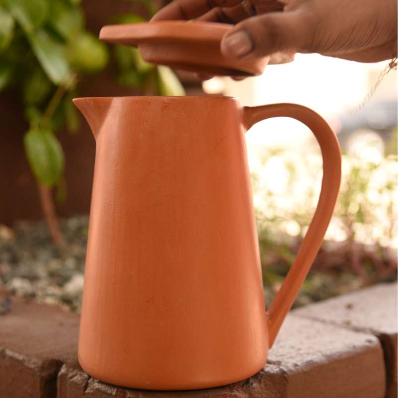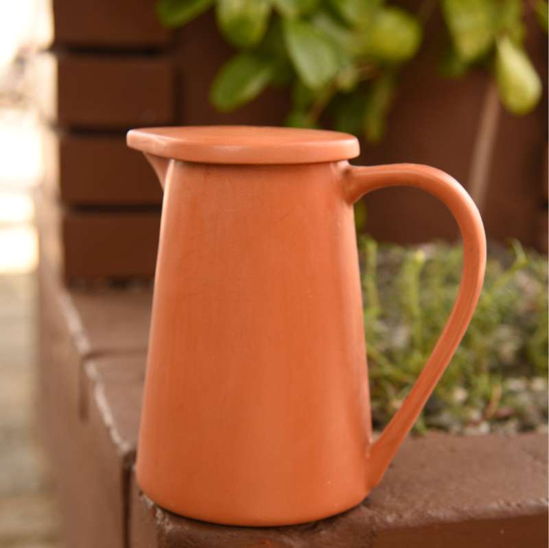 Elegant Terracotta Water Jug – Refreshment with a Touch of Tradition! Discover the timeless charm and practical benefits of our Terracotta Water Jug, designed to bring a touch of rustic elegance to your hydration routine. Perfect for adding a unique element to your kitchen or dining area, this jug not only serves as a beautiful decor piece but also enhances the quality of your drinking water. Features: Classic Design: With its graceful, traditional shape and earthy terracotta finish, this water jug adds a touch of rustic sophistication to any setting. Its elegant form and handcrafted details make it a stylish centerpiece for your table or countertop. Versatile Use: Ideal for serving water, fresh juices, or even iced tea, this jug is perfect for everyday use or special gatherings. Its generous capacity ensures you always have refreshing beverages at hand, whether you’re hosting a dinner party or enjoying a quiet meal. Unique Decor: Beyond its practical use, this terracotta jug doubles as a stunning decor piece. Its natural color and classic design blend seamlessly with various decor styles, from contemporary to traditional, enhancing the aesthetic of your home. Benefits of Drinking Water from Terracotta: Natural Cooling: Terracotta's porous nature allows for natural evaporative cooling, keeping your water refreshingly cool for longer periods. Enjoy a chilled drink even on the hottest days, thanks to the jug’s natural cooling properties. Purity and Taste: Drinking from terracotta can enhance the taste of water by naturally filtering out impurities and adding a subtle, earthy flavor. This traditional method of purification provides a cleaner, fresher taste that modern methods can’t match. Hydration and Health: Terracotta helps to maintain an optimal level of hydration by keeping water cool and refreshing. The natural cooling effect encourages more frequent drinking, supporting better hydration and overall well-being. Eco-Friendly Choice: Made from natural clay, this jug is an environmentally friendly alternative to plastic and metal drinkware. Its production process has a lower environmental impact, making it a sustainable choice for conscious consumers. Artisanal Craftsmanship: Each jug is handcrafted, giving it a unique, artisanal quality that adds character to your kitchen. The natural texture and warm tones of terracotta create a timeless appeal that enhances any setting. Enhance your hydration experience with the Terracotta Water Jug – where tradition meets practicality in a beautifully designed piece. Perfect for daily use or as a thoughtful gift, this jug offers both functional benefits and aesthetic charm, making every sip a refreshing delight!