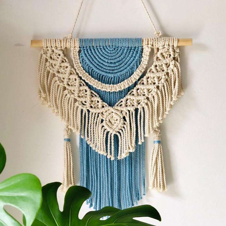 Transform your space with our stunning Two-Tone Handmade Macramé Wall Hanger, an exceptional blend of artistry and sophistication crafted by skilled local artisans in Sri Lanka. Each piece is a celebration of traditional craftsmanship and modern design, offering a unique touch to any room. Dimensions : 12" x 18" Key Features: Customizable Two-Tone Design: Personalize your wall hanger by choosing 2 out of 37 available colors. Whether you prefer subtle pastels or bold contrasts, you can create a combination that perfectly complements your décor and expresses your individual style. Artisanal Craftsmanship: Handcrafted with meticulous attention to detail, this macramé wall hanger showcases the exceptional skills of Sri Lankan artisans. Your purchase supports these talented creators and helps sustain traditional crafting techniques that have been passed down through generations. Sustainable and Eco-Friendly: Made from high-quality, natural materials, this wall hanger is an environmentally conscious choice. Each piece is crafted with care to ensure it is as kind to the planet as it is beautiful. Versatile Decor Piece: Ideal for adding a touch of bohemian charm to any room, this wall hanger fits seamlessly into various interior styles. It’s perfect for brightening up your living room, bedroom, or office with its customizable design. Thoughtful Gift Option: Looking for a unique and meaningful gift? This macramé wall hanger makes a wonderful present, allowing your loved ones to enjoy both Handcrafted artistry and the freedom to choose their favorite colors. By choosing our Two-Tone Handmade Macramé Wall Hanger, you are not only adding a beautiful, personalized piece to your home but also supporting local artisans and preserving their rich cultural heritage. Embrace the beauty of handmade artistry and make a positive impact with your purchase