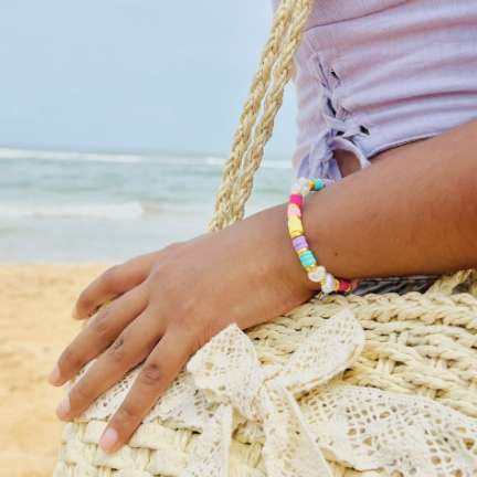 Step into a world of vibrant hues and beachy bliss with our Handmade Vibrant Multicolor Polymer Clay Beach Bracelet. This stunning piece is meticulously crafted to capture the essence of a sunlit shore, blending a spectrum of lively colors to create a bracelet that’s as dynamic and fun as a day at the beach. Each bead is individually handmade from premium polymer clay, showcasing an array of bright and bold colors inspired by the natural beauty of the coast. From the soothing blues of the ocean to the warm, golden tones of the sand, every detail is designed to evoke the carefree joy of beach life. The bracelet’s design is not only visually striking but also incredibly comfortable. It features an adjustable band, ensuring a perfect fit for most wrist sizes while allowing for easy wear and removal. The lightweight construction makes it ideal for all-day wear, whether you’re lounging by the sea or adding a touch of summer flair to your daily outfits. Key Features: Handmade Craftsmanship: Each bead is individually crafted with care, resulting in a unique and vibrant design. Colorful Beach-Inspired Palette: A lively mix of colors reminiscent of sunny beaches and ocean waves. Adjustable Fit: Designed with a flexible band to accommodate various wrist sizes comfortably. Lightweight and Durable: Made from high-quality polymer clay for long-lasting wear and everyday comfort. Infuse your style with the playful spirit of the coast. Adorn your wrist with our Handmade Vibrant Multicolor Polymer Clay Beach Bracelet and let the sunshine follow you wherever you go!