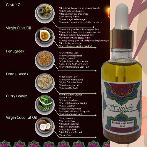 A unique blend of natural herbs and oils designed to promote hair health for all hair types. This 50ml herbal hair mask offers a comprehensive solution for healthier, shinier, and thicker hair. Benefits: - Healthier Hair Growth: Promotes strong and healthy hair growth. - Anti-inflammatory: Soothes the scalp and reduces inflammation. - Shiny and Thicker Hair: Enhances hair shine and thickness. - Slows Down Greying: Helps to slow down the greying process. - Dandruff Removal: Effectively gets rid of dandruff. - Suitable for All Hair Types: Designed to benefit all hair types. Ingredients: - Castor Oil: Known for its hair growth-promoting properties and nourishing effects. - Virgin Olive Oil: Rich in vitamins and antioxidants, it strengthens and moisturizes the hair. - Fenugreek: Helps in reducing hair loss and dandruff. - Fennel Seed: Provides essential nutrients and promotes hair growth. - Curry Leaves: Rich in beta-carotene and proteins, they help strengthen hair roots and prevent hair loss. - Virgin Coconut Oil: Deeply hydrates and conditions the hair, making it soft and shiny. How To Use: - Apply: Apply a generous amount of the hair mask to clean, damp hair, focusing on the scalp and ends. - Massage: Gently massage the mask into your scalp using circular motions to ensure even distribution. - Leave In: Leave the mask on for 20-30 minutes to allow the nutrients to penetrate deeply. - Rinse: Rinse thoroughly with warm water and follow with your regular shampoo and conditioner routine. - Repeat: Use once or twice a week for best results. Features: - 100% Natural Ingredients: Free from harmful chemicals and synthetic additives. - Multi-Purpose: Addresses various hair concerns including growth, shine, thickness, greying, and dandruff. - Easy to Use: Simple application process for a spa-like experience at home. Ideal For: - Regular Hair Care: Incorporate into your regular hair care routine for continuous improvement. - Special Treatments: Use as a special treatment for targeted hair issues. - Gift: A thoughtful gift for anyone looking to improve their hair health naturally