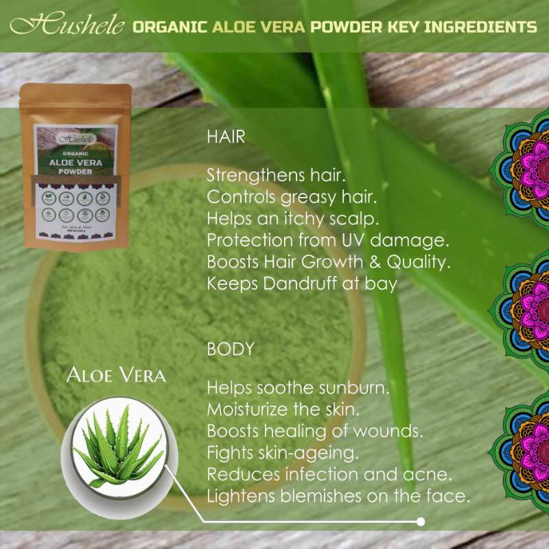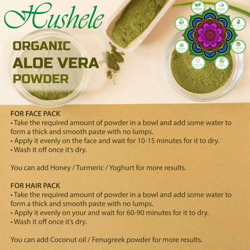 Hushele Organic 🪴 Aloe Vera Powder Pack 100g 💵550/=)💆♀️💆♂️🧖♀️🧖🛀For Beautiful Hair and Skin. 🌿🌱 100% natural Aloe Vera powder to boosts Hair Growth & Quality, Fights skin-aging, Keeps Dandruff at bay, Lightens blemishes on the face and helps to moisturize the skin. FOR FACE PACK • Take the required amount of powder in a bowl and add some water to form a thick and smooth paste with no lumps. • Apply it evenly on the face and wait for 10-15 minutes for it to dry. • Wash it off once it’s dry. You can add Honey / Turmeric / Yoghurt for more results. FOR HAIR PACK • Take the required amount of powder in a bowl and add some water to form a thick and smooth paste with no lumps. • Apply it evenly on your and wait for 60-90 minutes for it to dry. • Wash it off once it’s dry. You can add Coconut oil / Fenugreek powder for more results