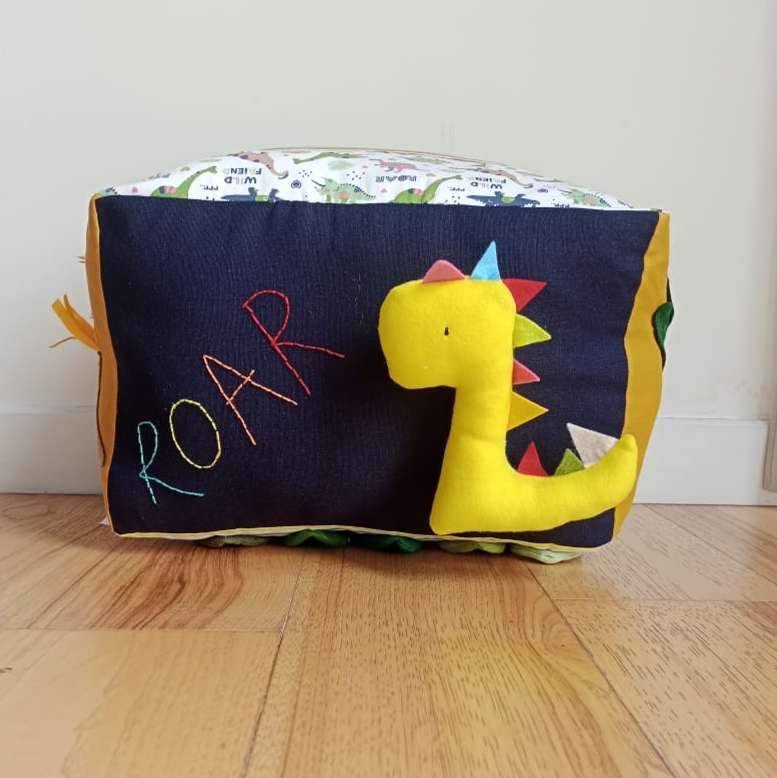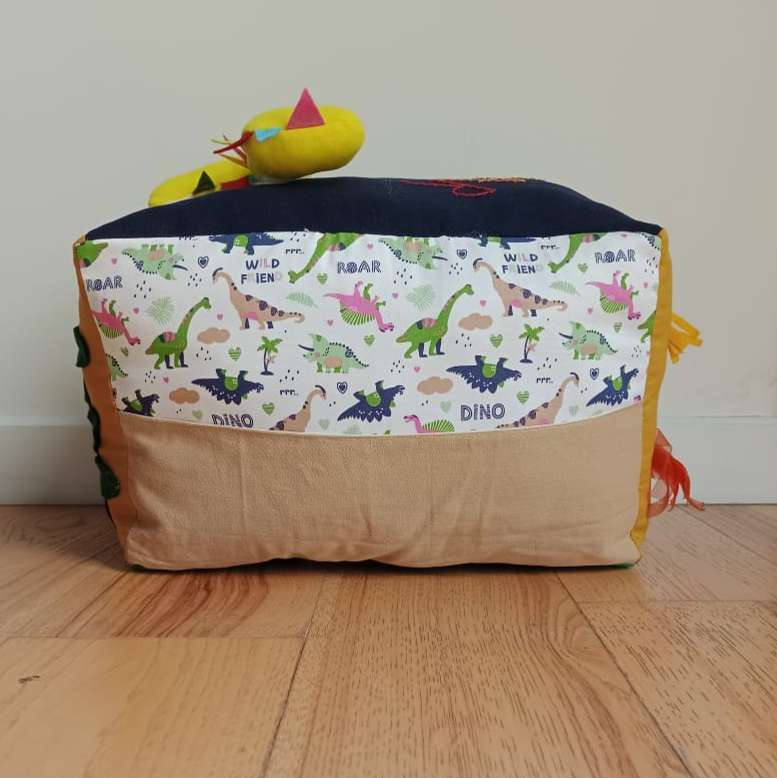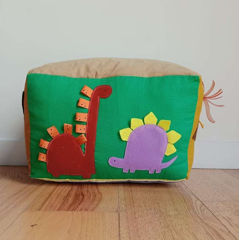 Interactive Dino Sensory Pillow Unleash a world of discovery and fun with the Interactive Dino Sensory Pillow—a gift that combines play with educational benefits. Designed to captivate and engage, this unique pillow features six interactive sides, each offering a new adventure for sensory exploration and skill development. Product Highlights: Six Interactive Sides: Each side of the Dino Sensory Pillow features different textures, colors, and tactile elements, providing endless opportunities for sensory play and learning. Perfect for stimulating touch, sight, and motor skills. Soft and Squishy Textures: Crafted from plush, high-quality materials, this pillow offers a soft and squishy feel that’s both comforting and engaging, making it ideal for cuddles and interactive play. Vibrant Dinosaur Design: With its bright colors and fun dinosaur theme, this sensory pillow adds an extra layer of excitement and imagination to playtime. It’s designed to capture the interest of kids and spark their creativity. Educational and Entertaining: Beyond just play, the pillow helps develop essential motor skills and provides tactile stimulation, supporting cognitive and sensory development in a fun and interactive way. Handcrafted Quality: Each pillow is carefully handcrafted to ensure durability and attention to detail, making it a cherished addition to any child’s playtime routine. The Interactive Dino Sensory Pillow is more than just a toy—it’s a dynamic tool for imaginative play and learning. Whether for a special gift or a delightful addition to playtime, this pillow is sure to be a favorite among kids of all ages, offering endless fun and valuable developmental benefits