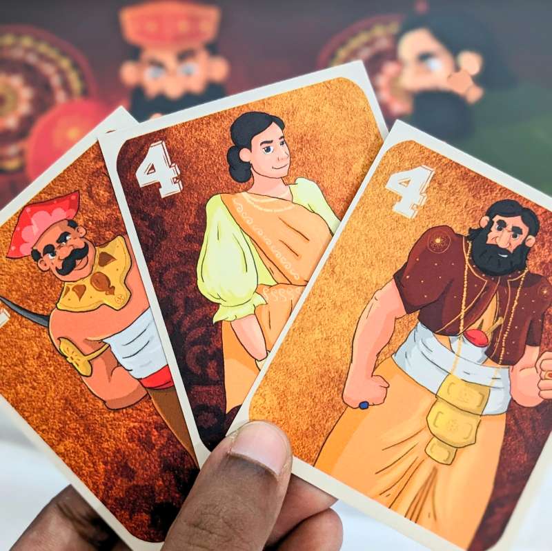 Kingdom of Kandy: A Thrilling Card Game of Strategy and Deception Description: Dive into the heart of 18th-century Sri Lanka with "Kingdom of Kandy," an exhilarating card game that blends strategy, deception, and historical intrigue. This engaging game challenges players to either defend the resilient Sri Lankan kingdom from British invaders or lead the charge to conquer it. Will you emerge victorious in this battle of wits? Key Features: Historical Thrill: Immerse yourself in the historical setting of 18th-century Sri Lanka, where the kingdom of Kandy stands as a bastion of resistance against the British Empire. The game's rich theme adds a layer of depth and excitement to every strategic move. Strategic Gameplay: Engage in a dynamic game of strategy and deception. Players must use their wits to outmaneuver opponents, employing clever tactics to either protect the kingdom or seize control. Versatile Fun: Perfect for both kids and adults, "Kingdom of Kandy" is an ideal choice for family gatherings and parties. With gameplay that is easy to learn and quick to play, it's suitable for players aged 7 and above. Flexible Play: Designed for 2 to 8 players, this card game accommodates a variety of group sizes, making it a versatile addition to any game night. Quick Sessions: Each game takes between 15 to 20 minutes, offering fast-paced fun that fits into any schedule. Three Games in One: Enjoy three distinct game modes within one box, providing variety and replayability. Each mode offers a unique experience, keeping the game fresh and engaging every time you play. Easy to Learn: The game includes a clear and concise rule book, ensuring that players of all ages can quickly grasp the mechanics and dive into the action. Specifications: Number of Players: 2 to 8 Game Duration: 15 to 20 minutes Recommended Age: 7 and above Included: Rule book Prepare for an unforgettable experience with "Kingdom of Kandy," where every game session is a battle of strategy, deception, and historical intrigue. Defend the kingdom or conquer it— the choice is yours!
