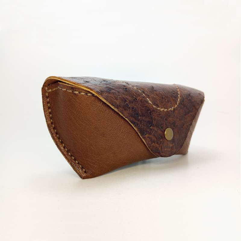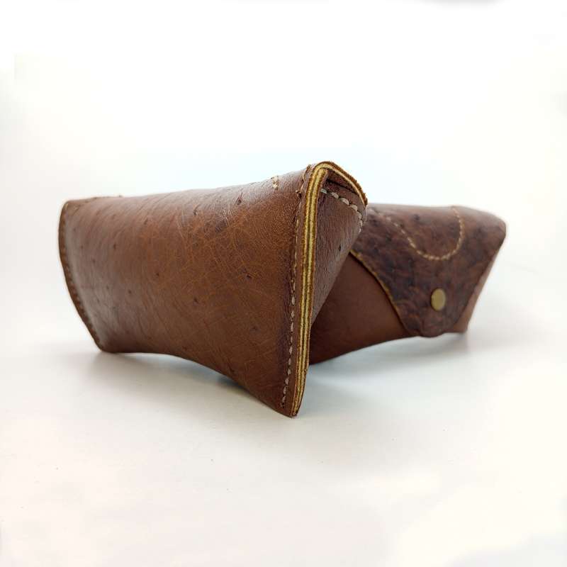 LERD Handmade Leather Sunglass Cover Dimensions: Length: 6.2 inches (15.8 cm) Width: 2.7 inches (6.9 cm) Height: 1.8 inches (4.6 cm) Weight: 35g - 45g Specifications: Design: One Pocket Stitching: Waxed Threads, Handmade / Hand Stitched Closure: Snap Button Branding: LERD Branded Material: Leather Type: Full grain ostrich leather The LERD Handmade Leather Sunglass Cover is a premium accessory designed to protect your sunglasses with style and durability. Crafted from top grain cow leather, this cover is not only robust but also ages beautifully, developing a unique patina over time. The cover features a single pocket design, ensuring a snug fit for your sunglasses, while the waxed threads and hand-stitched construction provide exceptional strength and a touch of artisanal charm. The snap button closure adds convenience and security, making it easy to access and store your sunglasses. Available in a variety of colors, this sunglass cover combines functionality with a classic aesthetic, perfect for the discerning individual