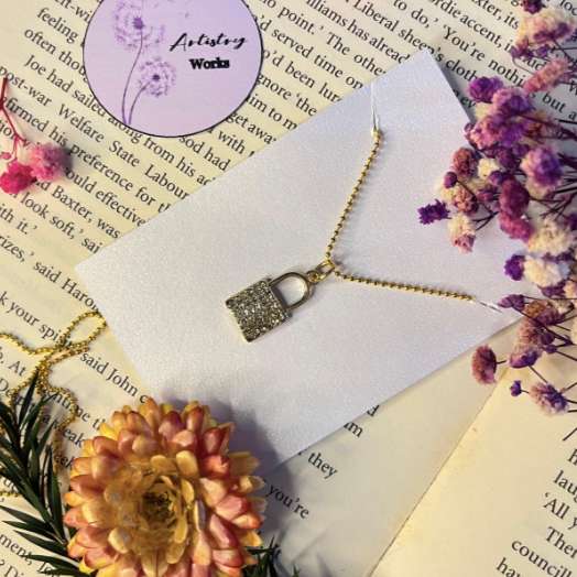 Item #063 Add a touch of classic sophistication to your jewelry collection with our Padlock Charm Necklace, a chic piece that blends timeless design with modern elegance. Handcrafted with precision, this necklace features a sleek padlock charm that symbolizes security and style. The charm’s polished design and high-quality gold-plated finish offer a refined look, making it a perfect accessory for adding a touch of understated luxury to any outfit. Key Features: Material: Durable metal with a gold-plated finish for a touch of elegance Design: Exquisitely crafted padlock charm with a smooth, polished finish Chain: Adjustable, gold-plated chain for a comfortable and customizable fit Closure: Secure lobster clasp for ease of wear and reliability Ideal for both casual and formal occasions, this charm necklace adds a sophisticated and stylish element to your ensemble. Wear it on its own for a classic statement or layer it with other pieces to create a look that reflects your unique taste. Care Instructions: To maintain the beauty of your padlock charm necklace, avoid exposing it to harsh chemicals and prolonged moisture. Clean with a soft, dry cloth and store in a dry, cool place. Elevate your style with this elegant padlock charm necklace and let your fashion shine with timeless sophistication!
