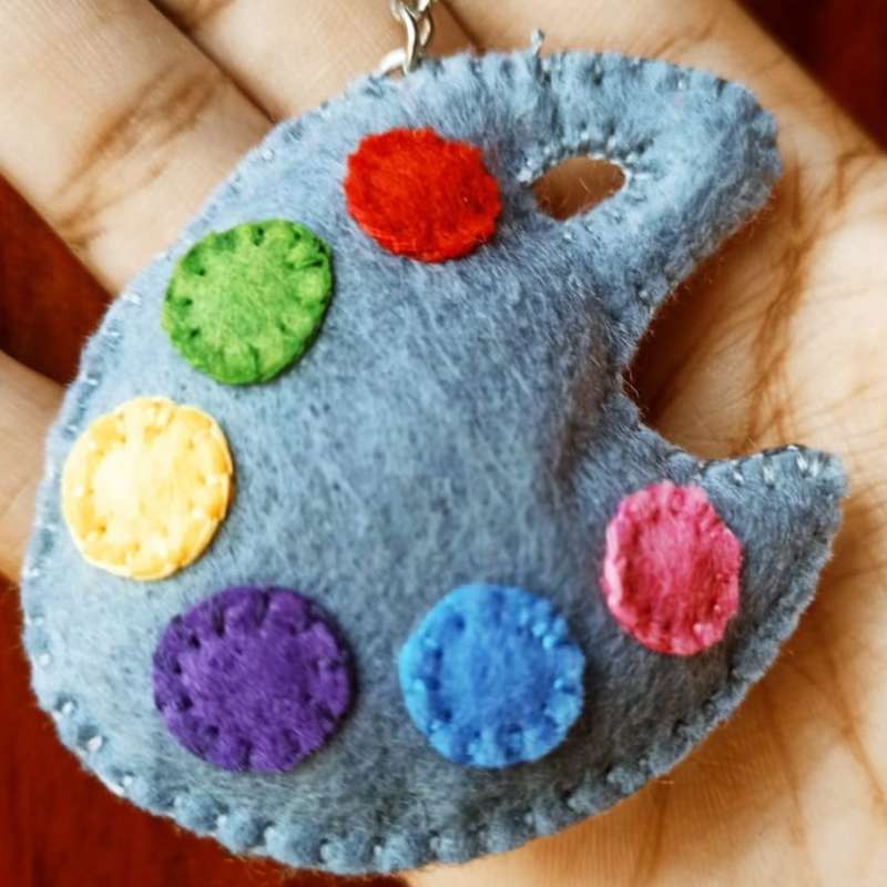 Introducing the Handmade Paint Board Felt Keychain, a charming accessory that brings a touch of artistic flair to your everyday items. This keychain is meticulously crafted from high-quality felt, ensuring durability and a soft touch. - Material: Made from high-quality felt, providing a cozy and lasting accessory. - Design: Features a charming paint board design, showcasing meticulous craftsmanship and attention to detail. - Purpose: Perfect as a stylish accessory for your keys, bags, or as a unique gift for art enthusiasts. - Size and Fit: Compact size makes it easy to carry and a cute addition to any keyring or bag. - Versatility: Ideal for artists, art lovers, and anyone who appreciates handmade, unique accessories. Add a touch of creativity and charm to your accessories with the Handmade Paint Board Felt Keychain. Available now for those who love unique, handcrafted designs