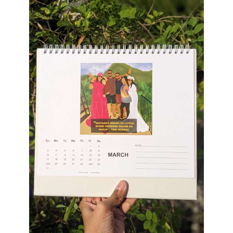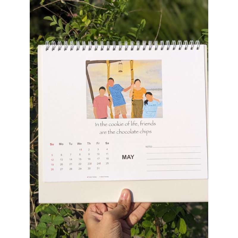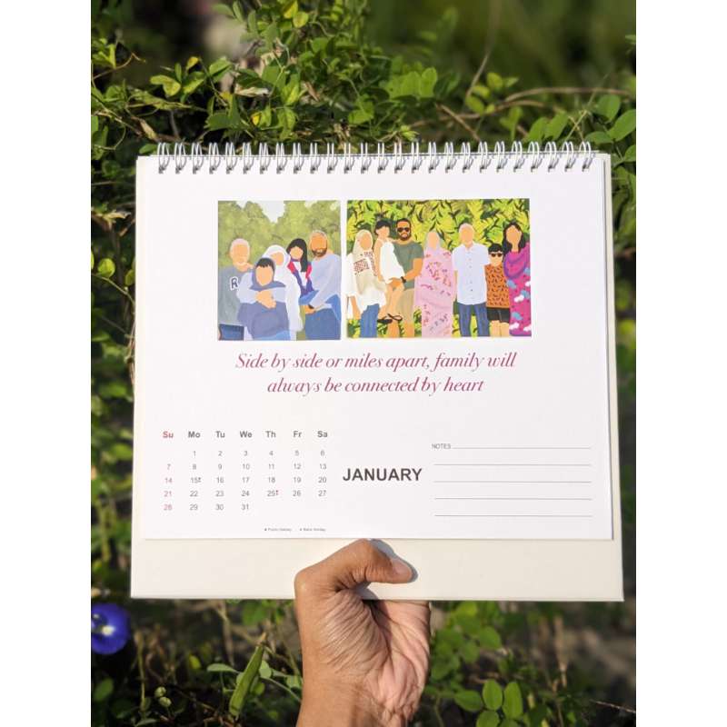 Introducing our Personalized Desk Calendars – where your favorite digital portraits and inspiring quotes come together in a beautifully printed masterpiece for your desk! Each calendar is crafted with a stunning cover image and a unique design for every month of the year, all digitally printed to perfection. How It Works: Upload Your Cover Image: Start by providing a high-resolution image for the cover of your calendar. This could be a cherished portrait, a memorable photo, or a favorite quote to set the tone for your year-long journey. Submit Monthly Images: Next, upload 12 images for the months of the year. You can choose 12 digital portraits, personal photos, or any visuals that you want to feature. Include Optional Quotes: Along with the images, you have the option to provide 12 quotes, one for each month. If you prefer not to include quotes, that’s perfectly fine; just leave the quote slots blank. Design and Review: Our expert design team will integrate your images and optional quotes into a beautifully personalized calendar layout. You’ll have the opportunity to review and approve the design before printing. Enjoy Your Calendar: Once completed, your calendar will be printed on high-quality paper with a sleek, professional finish. It’s a practical way to keep track of important dates while enjoying a year’s worth of custom-designed artwork. You have 13 slots for your images: 1 for the cover and 12 for the months. Additionally, you can provide up to 13 quotes to accompany the images, with the quotes being optional. Personalize your desk with a touch of creativity that celebrates your favorite visuals and meaningful messages!