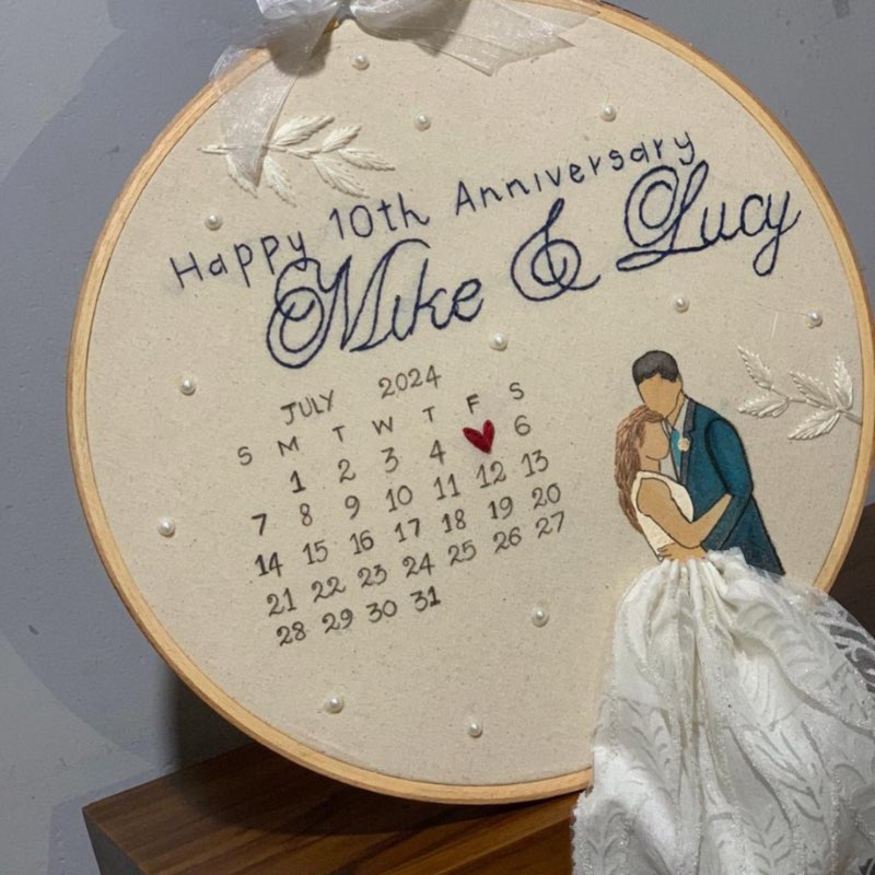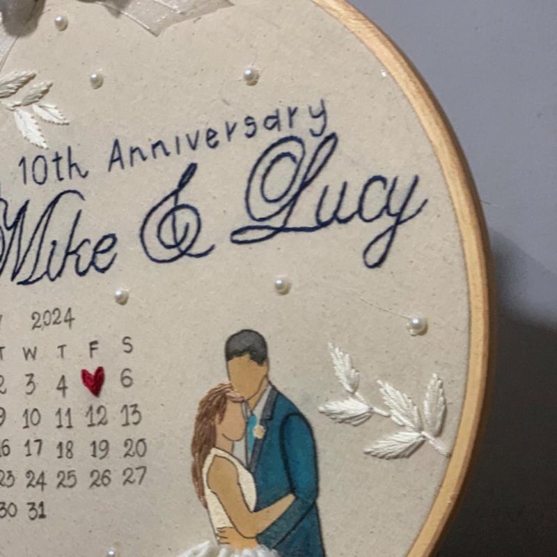 Welcome to my shop! Here you will find beautiful, handmade hoop art that is perfect for sprucing up any house room or as a unique gift. Each piece of art is carefully handcrafted using the highest quality materials & Hand-stitched with 100% cotton thread onto different sizes of embroidery hoops, the design features an array of colorful flowers. The design is embroidered onto the fabric and then placed in a wooden hoop for the perfect finishing touch. The design options are endless and I am always open to custom orders. With each hoop art piece, you will receive a special and unique piece that is made to last. This custom name embroidery is perfect for a couple's special day. Handmade with the highest quality materials, this embroidery hoop art makes an excellent and unique wedding gift. Note: Every piece is purely customized and handmade! There's not a single person working on these hoops, Please expect a little difference in the details such as bun, bouquet, or any other design. Also, Please mention each and every minute detail to make sure everything is understood. 1. Name of a couple 2. Wedding date 3. Color of the brides dress: 4. Bride hair/haircolor (Bun/ long open curls): 5. Color of the grooms suit: 6. Grooms hair color: The color of the embroidery design will match according to the color of the bride's dress Sizes available: 6" hoop 8" hoop 12" hoop 18" hoop Thank you for visiting our shop!