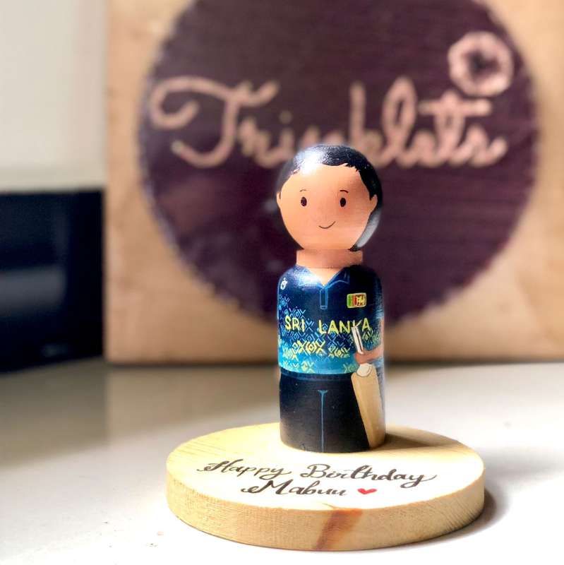 Bring your treasured memories to life with our Couple Peg Dolls. Standing at a charming 4 inches, each doll is meticulously crafted and painted by hand, capturing the unique details and personality of the individuals depicted in your provided photographs. Key Features: Personalized Design: Our artisans recreate the details of your chosen photograph, ensuring each peg doll is a faithful representation of the subject. Handmade Quality: Crafted from high-quality wood, these peg dolls are smooth and durable, promising longevity. Handpainted Precision: Expertly painted with non-toxic, vibrant paints, each stroke captures intricate nuances and characteristics. Perfect Gift: Ideal for birthdays, anniversaries, weddings, or any special occasion, these custom peg dolls make heartfelt and unforgettable gifts. Collector's Item: Beyond being a thoughtful present, these peg dolls serve as beautiful keepsakes, cherished for years to come. Add-Ons: - Wood stand with custom wording: LKR 500/- extra