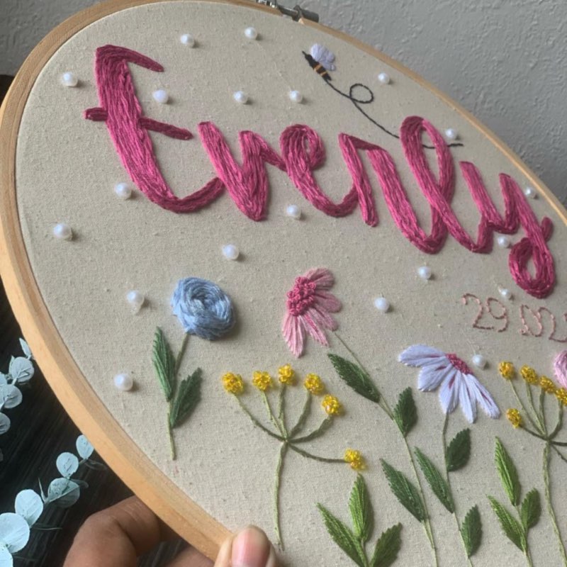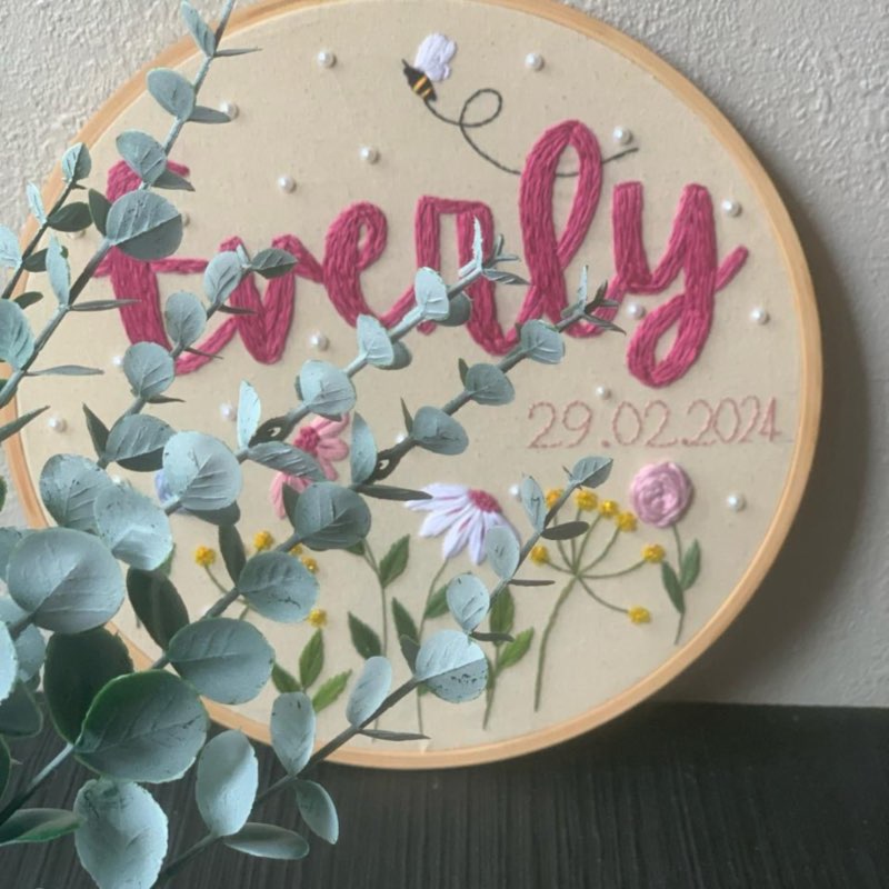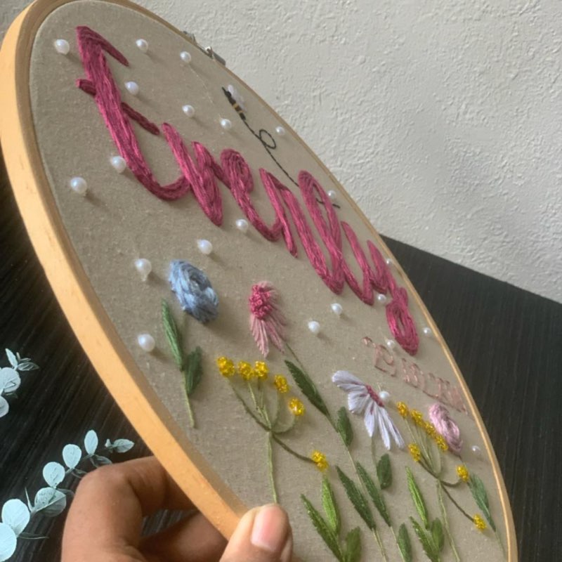 This Personalised hand embroidered hoop would make a perfect gift for a nursery, a birthday, an anniversary or any other special occasion. You can simply customize it by choosing the name. Each piece is hand embroidered by me with Anchor Brand Embrodiery threads on soft linen or cotton. Due to unique nature of the item slight changes may occur. All hoops are made to order and may look different depending on how long the name is. The font size will appear smaller if there are lots of characters in the name so please keep that in mind before ordering