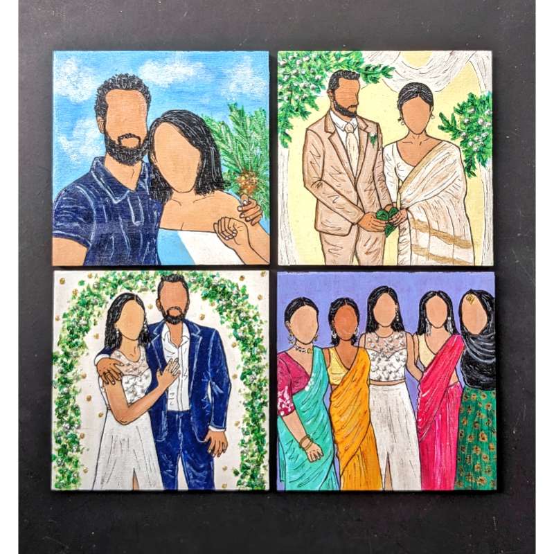 Elevate your home decor with our Custom Wooden Coaster Set, featuring four 4 x 4-inch coasters, each uniquely personalized to showcase your choice of portraits, quotes, or custom designs. Crafted from high-quality wood, these coasters offer both practicality and a personal touch, making them a perfect addition to any room or a thoughtful gift for someone special. Product Features: Set Includes: 4 wooden coasters Dimensions: Each coaster measures 4 x 4 inches Customization: Personalize with your choice of portraits, quotes, or designs Material: Premium-quality wood for durability and an elegant finish Functionality: Protects surfaces from drink stains while adding a personal touch to your decor Whether you’re commemorating cherished memories, showcasing inspirational quotes, or displaying custom artwork, this set allows you to infuse your space with personality and style. Each coaster is meticulously crafted to ensure high quality and a unique design that reflects your individuality. Ideal for home use or as a personalized gift, this coaster set combines function with a custom flair