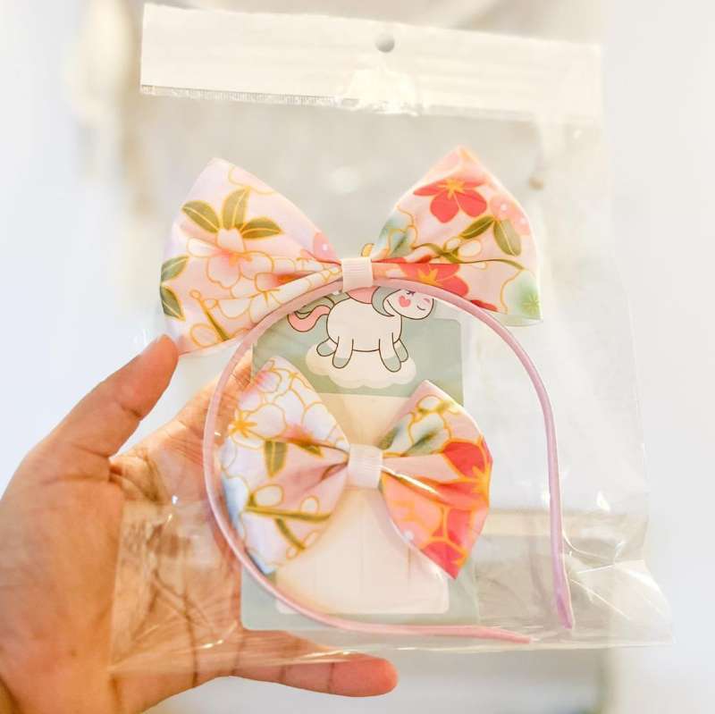 Pink Floral Headband & Bow Set