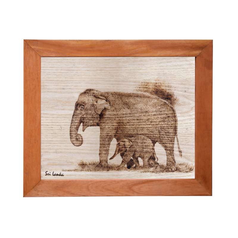 Elevate your living space with our stunning Wood Burn Art, a true testament to the skill and artistry of traditional pyrography. This unique wall hanging, meticulously handcrafted in Sri Lanka, is more than just decor—it's a piece of art with a story, born from the fusion of wood, fire, and creative vision. Dimensions and Weight: Size: Approximately 43 cm x 36 cm x 2.5 cm Weight: Approximately 965 g Materials: Wood Type: Treated finished plywood and treated Mahogany wooden frame Craftsmanship: 100% hand-made with precision and care Artistic Features: Technique: Pyrography, or wood burn art, involves painting on wood surfaces using burnishing techniques. This art form is characterized by its rich textures and detailed designs, created by carefully controlling the intensity of heat applied to the wood. Design: Our artworks are based on original photographs captured by us, ensuring that each piece is unique and deeply personal. The intricate patterns and lifelike details are achieved through freehand techniques—no laser equipment is used, making each artwork a one-of-a-kind creation. Color: The artwork features a color palette shown in the picture, tailored to enhance the natural beauty of the wood and complement your interior decor. Uniqueness: Exclusivity: Each piece is an original, handcrafted work of art. Although similar creations may be attempted, the freehand nature of our process ensures that no two pieces are ever exactly alike. This dedication to manual artistry results in a truly unique and personal addition to your home. Craftsmanship: This art piece reflects the highest standards of craftsmanship achieved by skilled Sri Lankan artists, highlighting their exceptional talent and commitment to traditional techniques. Gift Potential: Ideal Gift: Perfect for art enthusiasts and collectors, this wall hanging makes a memorable gift for special occasions. Its unique nature and handcrafted quality make it a standout choice for those seeking something distinctive and meaningful. Our Wood Burn Art is more than just a decorative item—it's a handcrafted masterpiece that embodies the rich tradition of pyrography. With its bespoke design, premium materials, and the artistry of a Sri Lankan craftsman, this wall hanging is a celebration of creativity and skill, destined to be a cherished addition to any home
