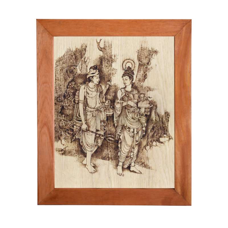 Elevate your living space with our stunning Wood Burn Art, a true testament to the skill and artistry of traditional pyrography. This unique wall hanging, meticulously handcrafted in Sri Lanka, is more than just decor—it's a piece of art with a story, born from the fusion of wood, fire, and creative vision. Dimensions and Weight: Size: Approximately 43 cm x 36 cm x 2.5 cm Weight: Approximately 965 g Materials: Wood Type: Treated finished plywood and treated Mahogany wooden frame Craftsmanship: 100% hand-made with precision and care Artistic Features: Technique: Pyrography, or wood burn art, involves painting on wood surfaces using burnishing techniques. This art form is characterized by its rich textures and detailed designs, created by carefully controlling the intensity of heat applied to the wood. Design: Our artworks are based on original photographs captured by us, ensuring that each piece is unique and deeply personal. The intricate patterns and lifelike details are achieved through freehand techniques—no laser equipment is used, making each artwork a one-of-a-kind creation. Color: The artwork features a color palette shown in the picture, tailored to enhance the natural beauty of the wood and complement your interior decor. Uniqueness: Exclusivity: Each piece is an original, handcrafted work of art. Although similar creations may be attempted, the freehand nature of our process ensures that no two pieces are ever exactly alike. This dedication to manual artistry results in a truly unique and personal addition to your home. Craftsmanship: This art piece reflects the highest standards of craftsmanship achieved by skilled Sri Lankan artists, highlighting their exceptional talent and commitment to traditional techniques. Gift Potential: Ideal Gift: Perfect for art enthusiasts and collectors, this wall hanging makes a memorable gift for special occasions. Its unique nature and handcrafted quality make it a standout choice for those seeking something distinctive and meaningful. Our Wood Burn Art is more than just a decorative item—it's a handcrafted masterpiece that embodies the rich tradition of pyrography. With its bespoke design, premium materials, and the artistry of a Sri Lankan craftsman, this wall hanging is a celebration of creativity and skill, destined to be a cherished addition to any home