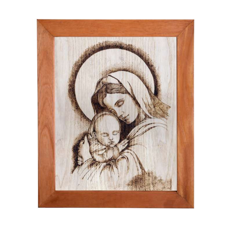 5. Pyrography Wood Burn Art - Mary & Infant Jesus